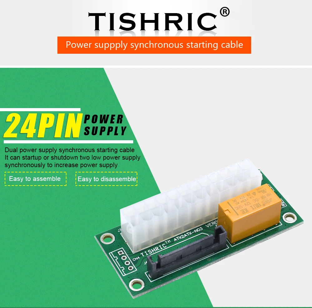 TISHRIC 24Pin к 4PIN/SATA двойной стартовый карточный шахтерский станок мощность синхронная пусковая линия двойной блок питания синхронизация стартер