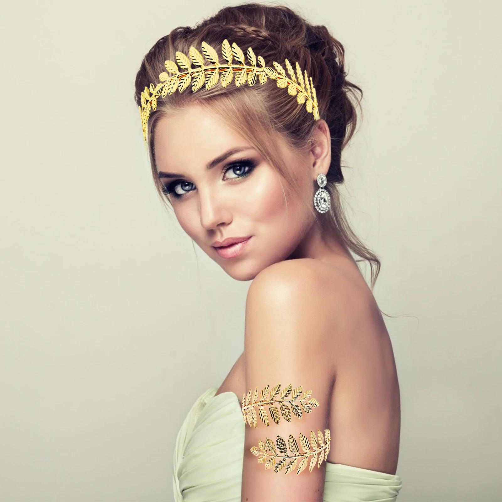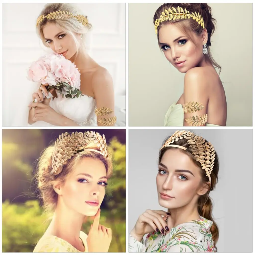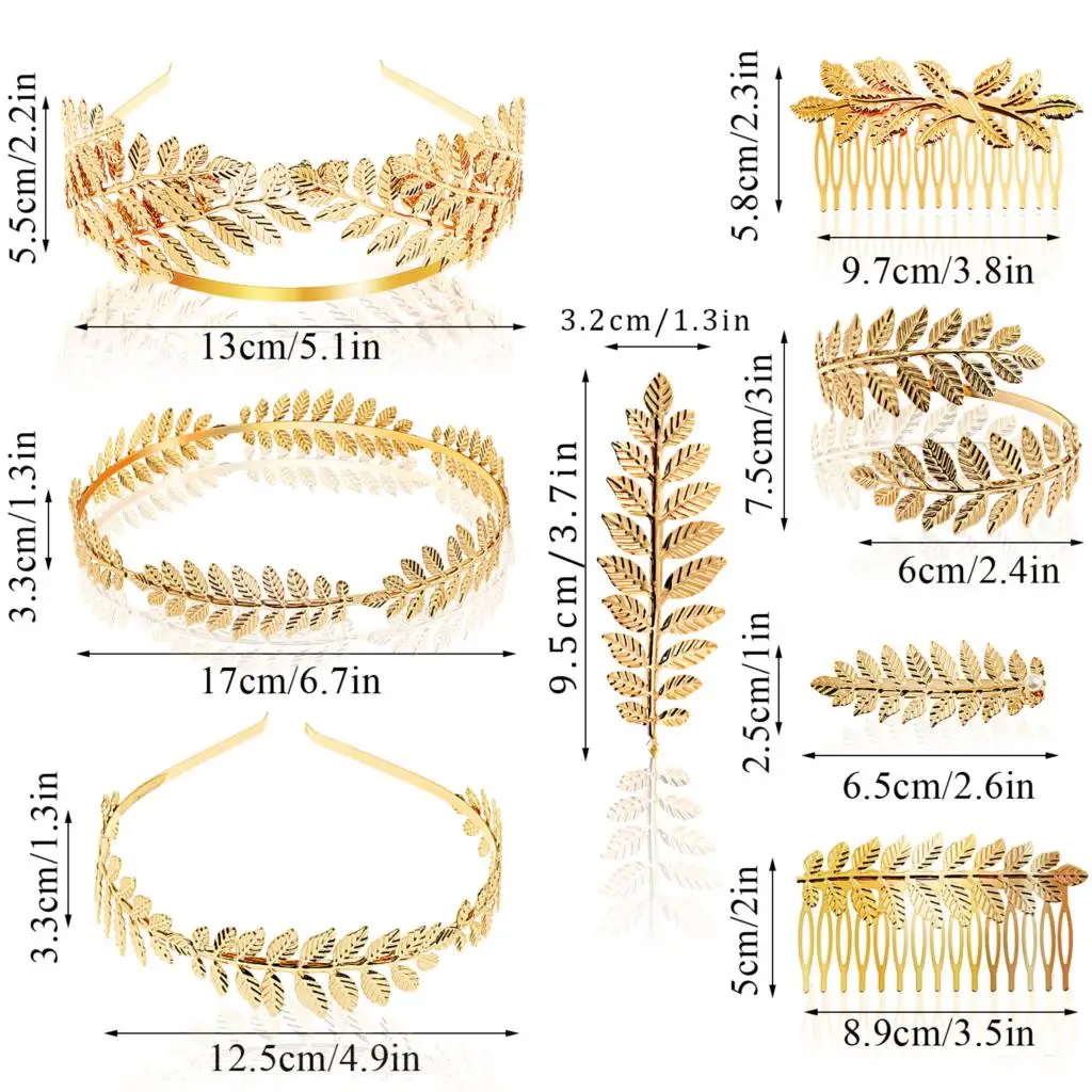 ★Большой ценный пакет: 7 предметов в старинном греческом стиле, аксессуары для волос в римском стиле, включая 1 золотую корону в виде листьев; 2 Золотых повязки разных размеров; 1 золотой гребень для волос в виде листьев и 2 заколки для волос разных цветов; 1 золотой браслет, Величественный и Изысканный аксессуар для костюма богини, который заставит вас почувствовать себя настоящей греческой/Римской императрицей или принцессой.
