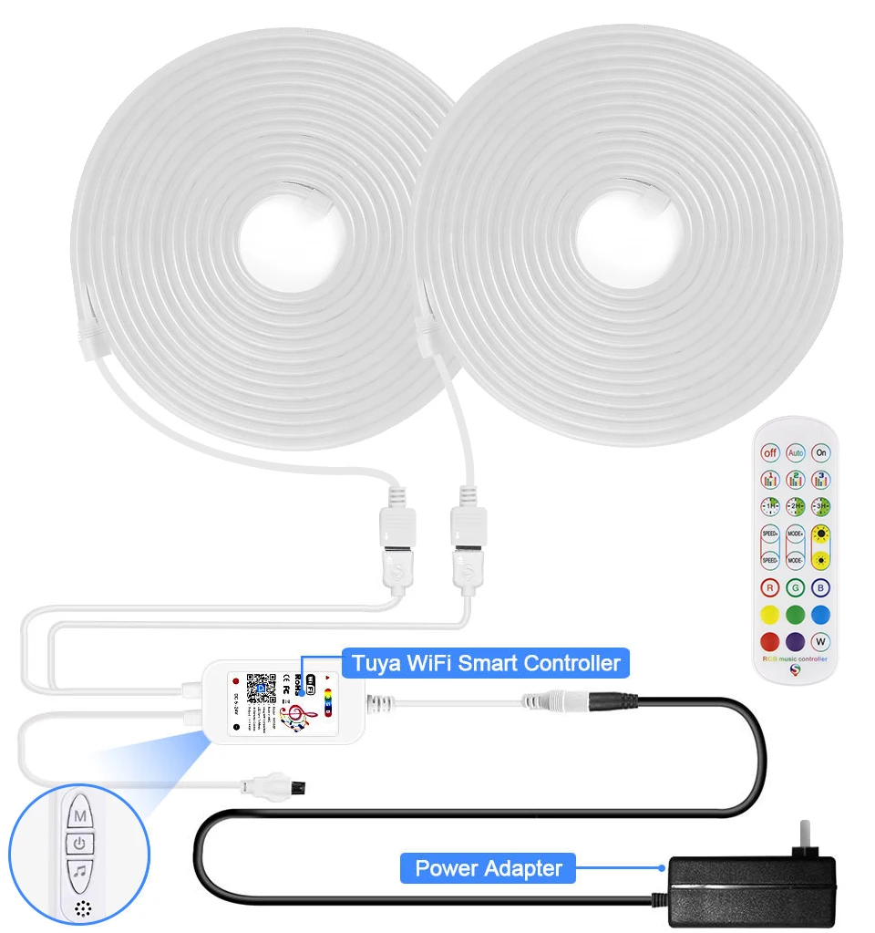 【Примечание】 Среди трех контроллеров, контроллеры Bluetooth и Tuya WiFi имеют режим музыкального ритма, встроенный микрофон с регулируемой чувствительностью, И цвет веревки светильник изменится с ритмом звука и музыки. Создайте романтическую, великолепную и интересную волшебную атмосферу для ваших вечерние. Отрегулируйте светильник для включения или выключения в определенное время. Вы увидите яркие цвета при пробуждении. Сделайте свет тусклым или Выключите автоматически во время фильма, чтобы установить правильную атмосферу.
