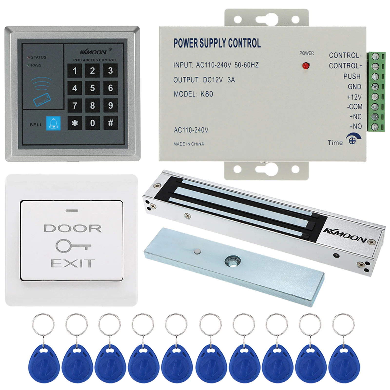 Система контроля доступа хост-контроллер паролей + 280 кг/617lb Электрический замок + дверной переключатель + блок питания DC12V + 0 шт. 125 кГц RFID карты