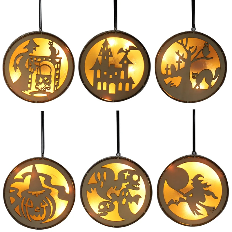 Деревянный Hollowen волшебник ведьмы тыква дом с привидениями черный Кот светодиодный светильник Кулон Хэллоуин реквизит Хэллоуин украшения для дома