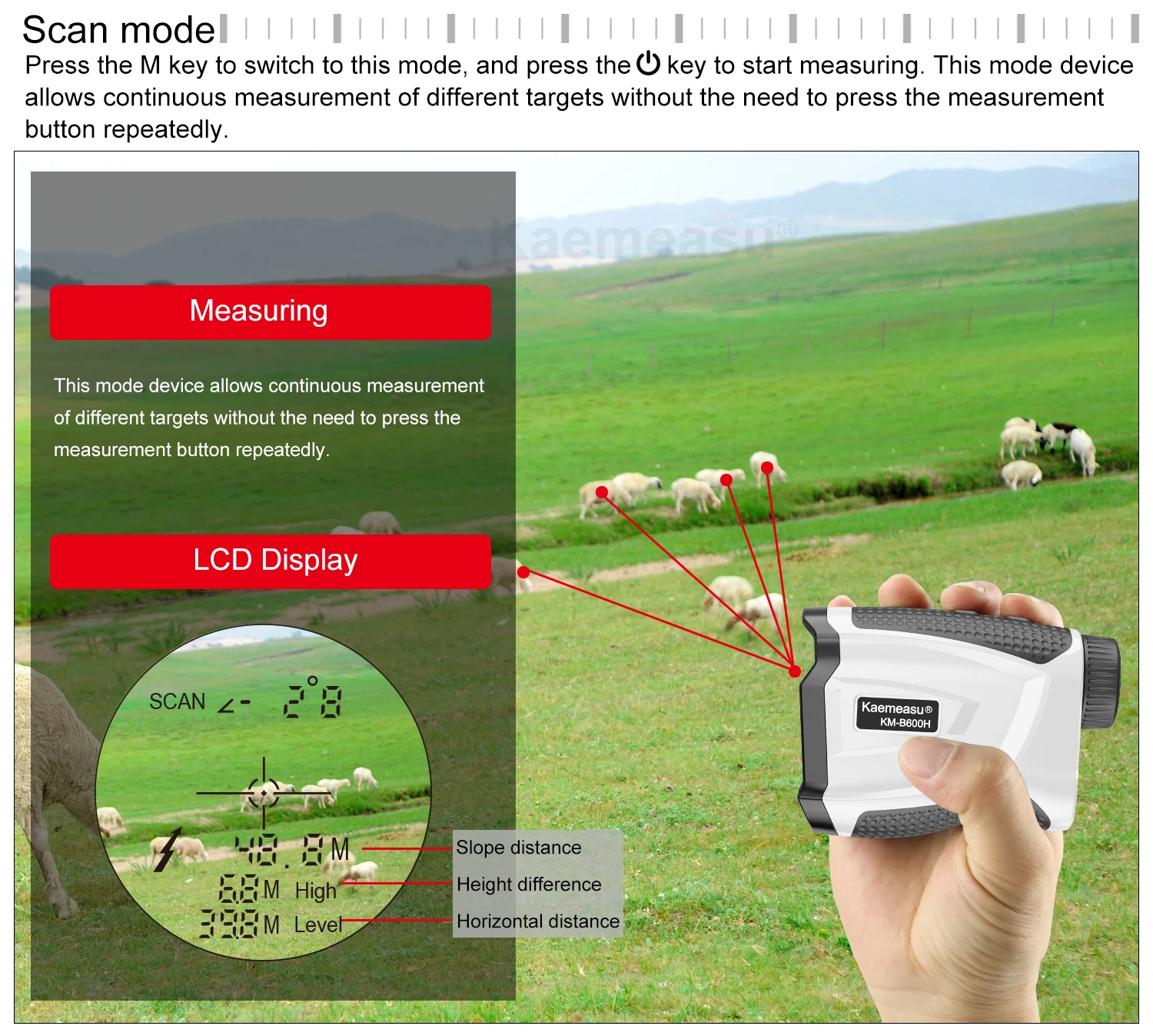 Диапазон измерения: 5-450 м/5-600 м/5-800 м/5-1000 м