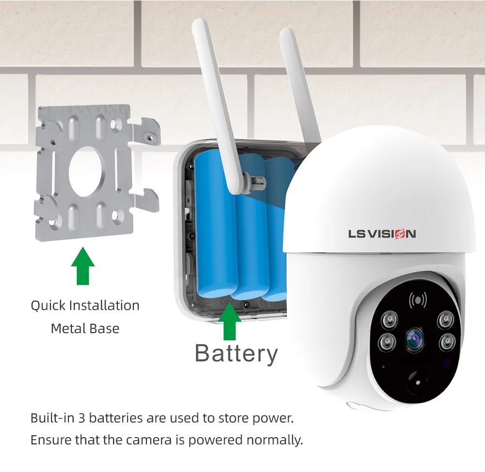 *Эта камера безопасности батареи ptz использует высокочувствительный датчик движения PIR и обнаружение AI для двойного управления и