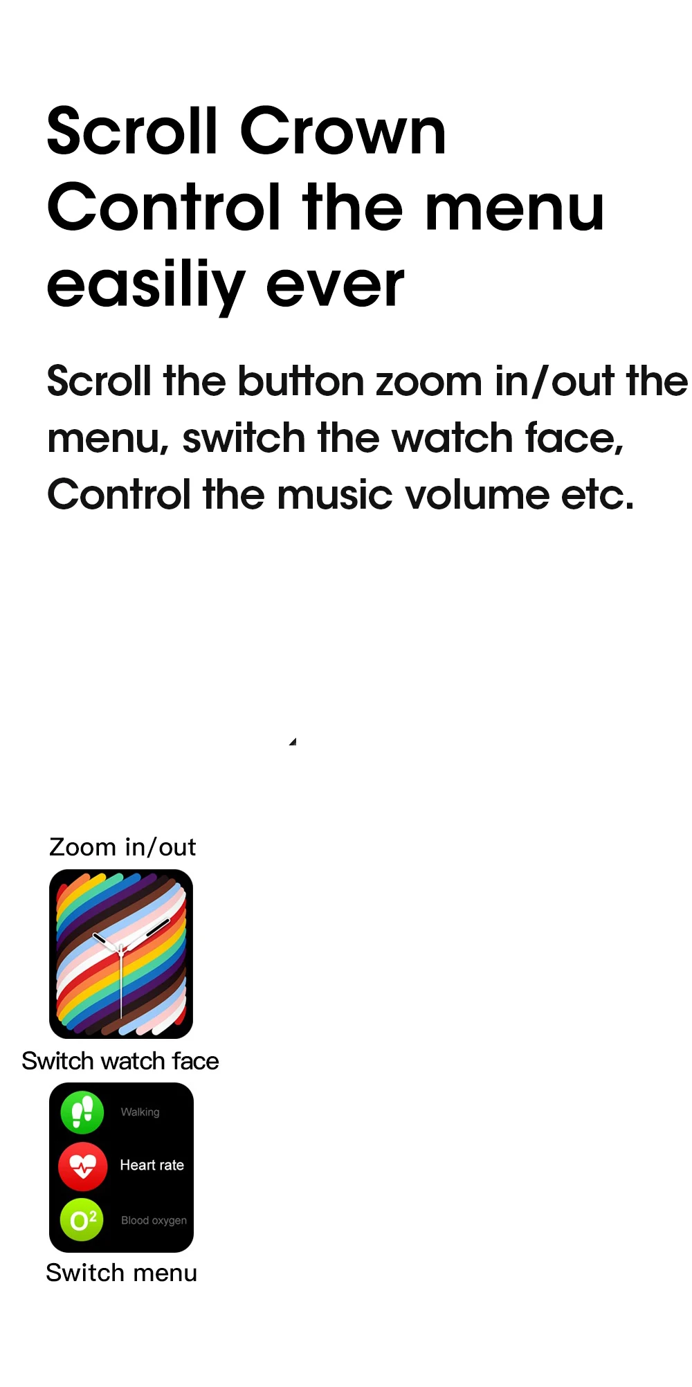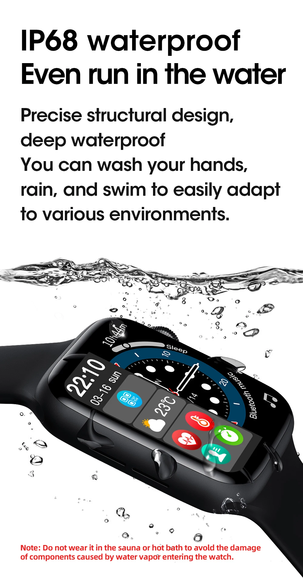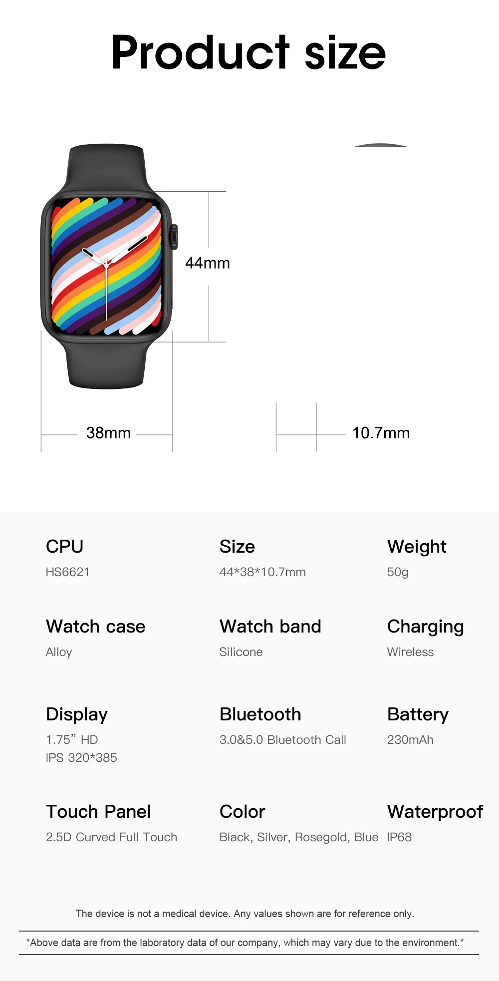Отличительные особенности: IP68 Водонепроницаемый, 1,75 дюймов Дисплей экономит много энергии, низкое потребление, двойной режим Bluetooth, 2 кнопки, Беспроводной Зарядное устройство.