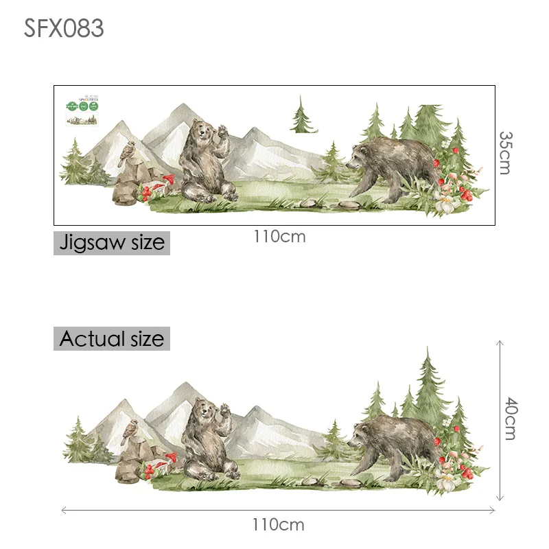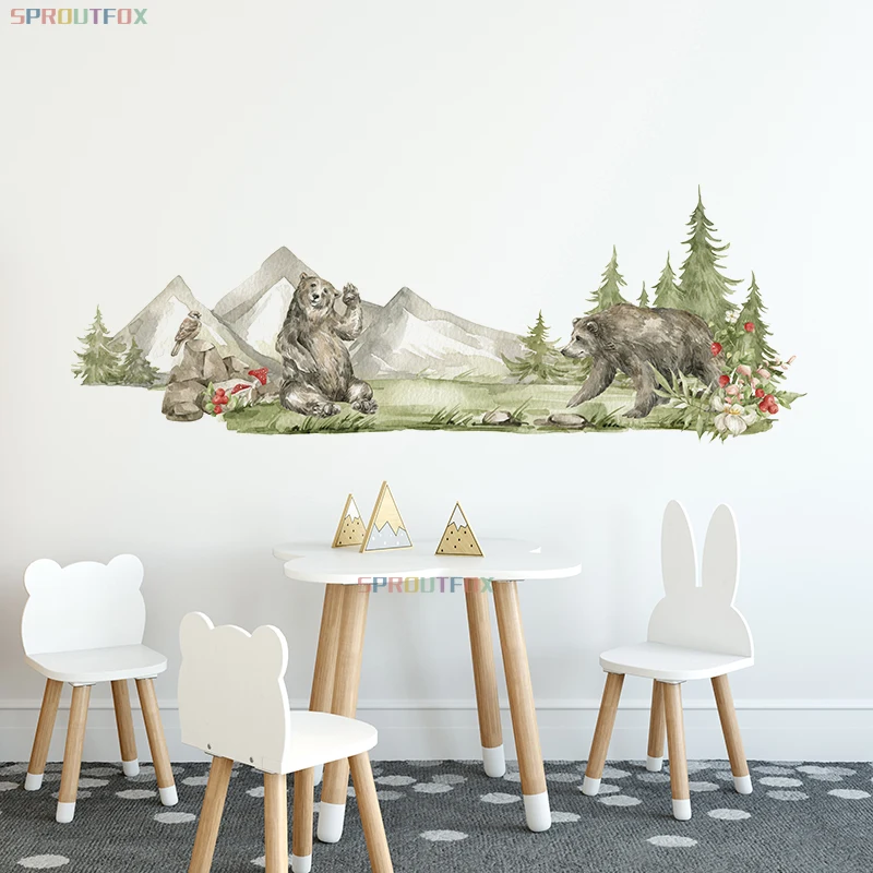 Большие коричневые наклейки на стену в виде медведя для детских комнат