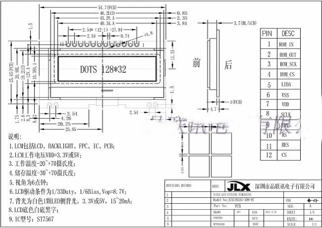 JLX12832G-509 ПК ЖК-модуль 12832 ЖК-модуль FSTN трансфективный последовательный порт SPI