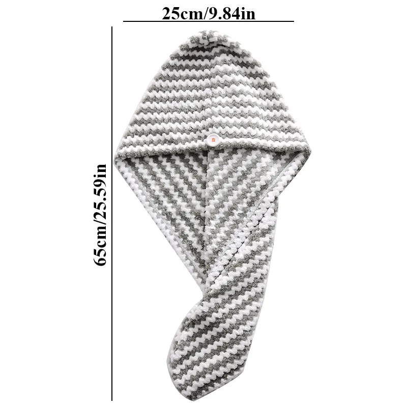 Описание:Шапочка из микрофибры в полоску для сухих волос, пушистое Волокно полностью соприкасается с воздухом и полностью впитывает влагу.