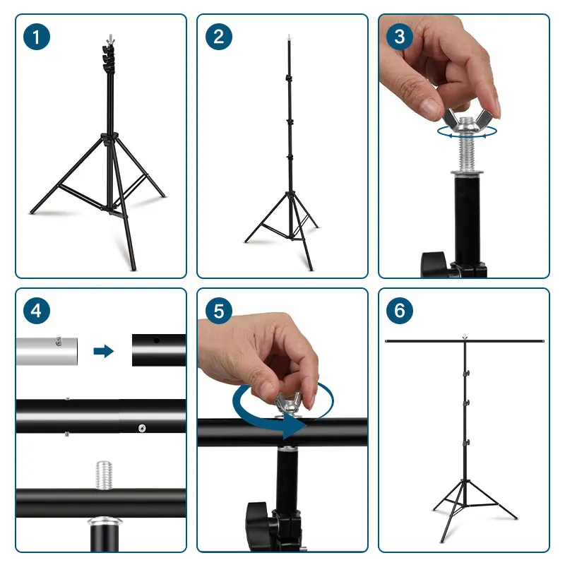Складная фоновая подставка из алюминиевого сплава может легко регулировать высоту.