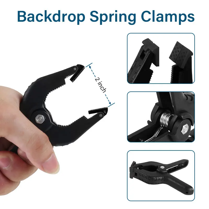 Сверхмощный пружинный зажим: пружинный зажим для фона используется для надежного фиксации фона на перекладине.