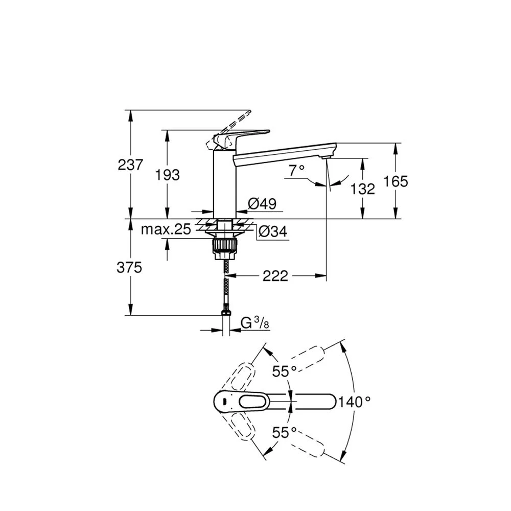 Основные преимущества: StarLight хромированная поверхность, GROHE QuickFix Plus - сверхбыстрая и простая установка - не требуется никаких инструментов, GROHE Zero Раздельные пути подачи воды - не содержит никеля и свинца