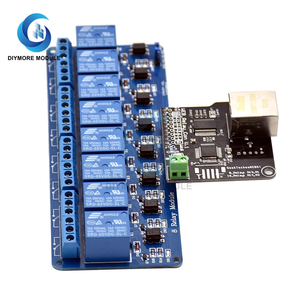 Это Ethernet контроллер платы, который может быть совместим с 8-канальный реле.