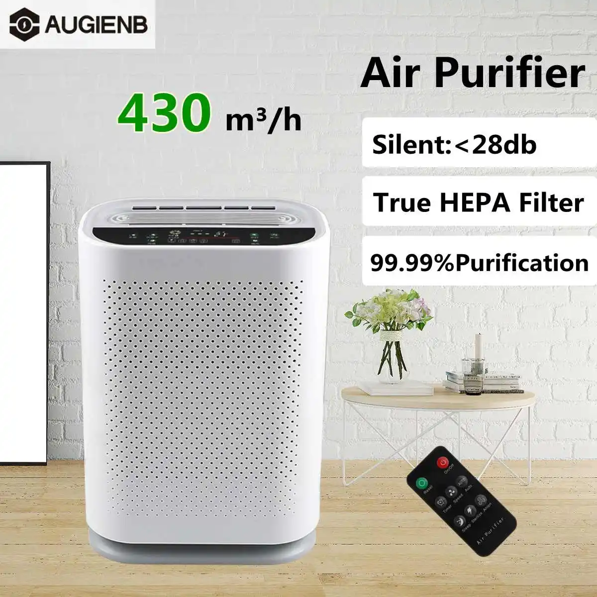 AUGIENB очиститель воздуха для дома большая комната с истиннымHEPAФильтр, увлажнитель воздуха, очиститель воздуха для аллергии и домашних животных, курильщиков, плесени, пыльцы, пыли,ТихийУстраняющие запах для спальни, сенсор, идеально подходит для большой комнаты, 430m 3/ч