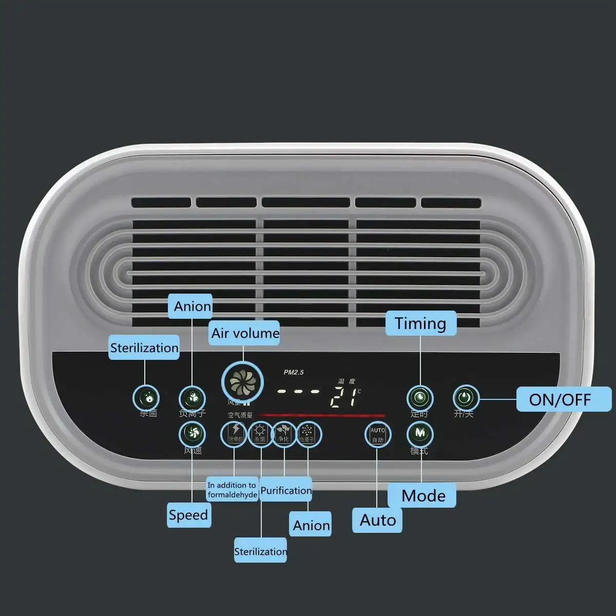 Включая первичную грубую очистку, очистку ЭВА,Фильтр HEPA, активированный кокосовый орех, очистка отрицательных ионов,Очистка углерода, очистка HEPA, очистка отрицательных ионов. Он производит концентрацию 10 миллионов отрицательных ионов кислорода, удаляя99.99% PM2.5, Формальдегида, пыльцы, дыма, плесени, пыли, запахов и домашних животных dander. Очищает воздух и улучшает здоровье. Идеально подходит для людей, страдающих аллергией, носовой духотой, кашлем, чиханием, астмой и т. д.