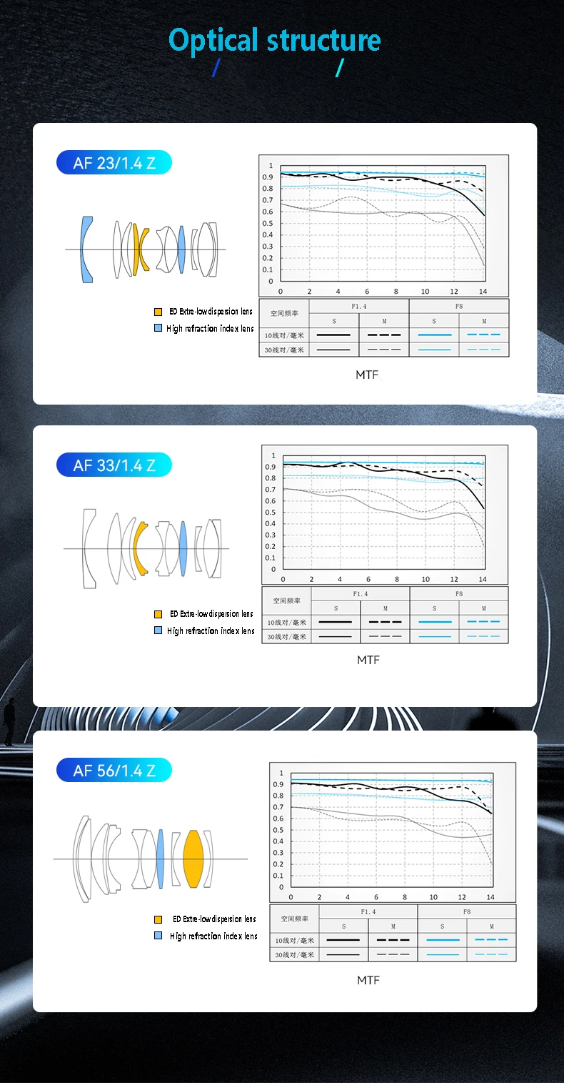 AF 23/33/56 1,4 Z-это объектив с автофокусом для крепления Nikon Z. Он поддерживает Eye-AF, отслеживая предмет и бесшумный двигатель STM, который может точно контролировать положение, обеспечивая быструю и плавную фокусировку.