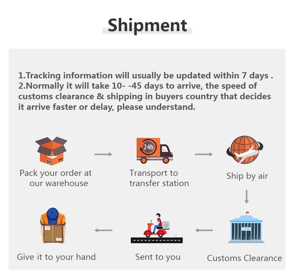 Время доставки: из-за covid-2019, если честно, Ваша посылка будет задерживаться, чем обычно, мы будем продолжать отслеживать и надеемся, что вы сможете получить его как можно скорее.