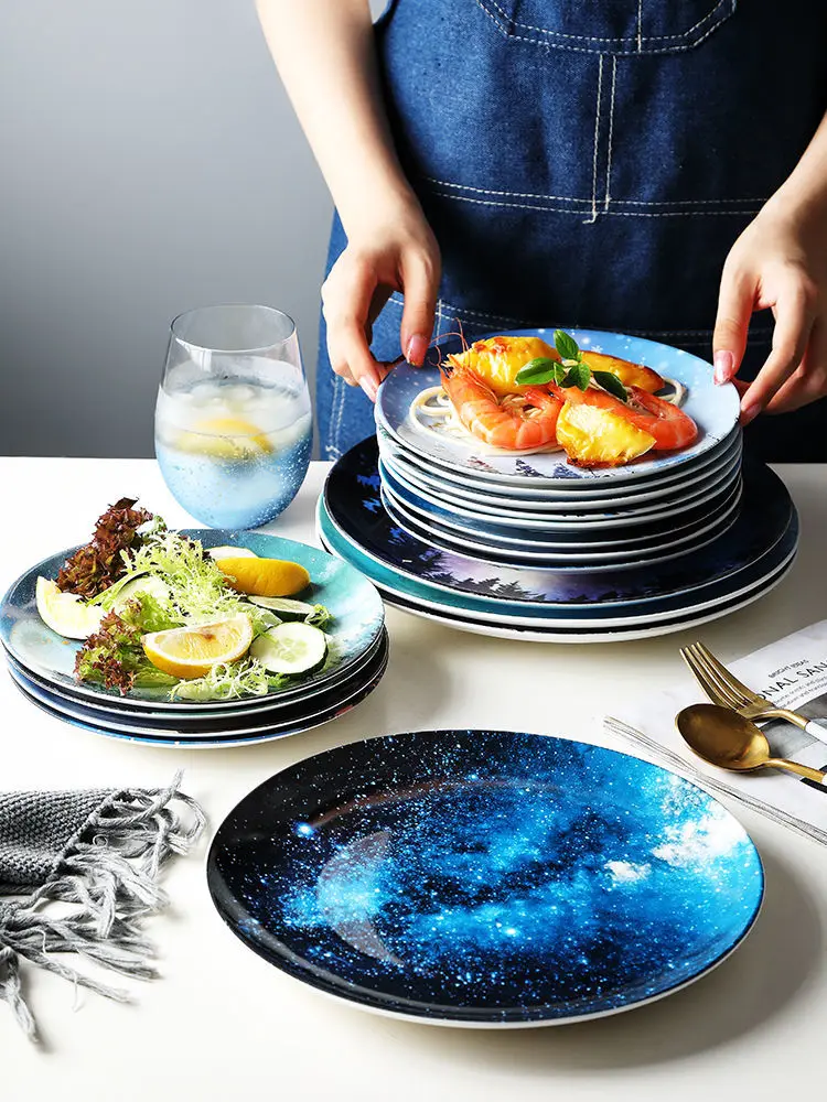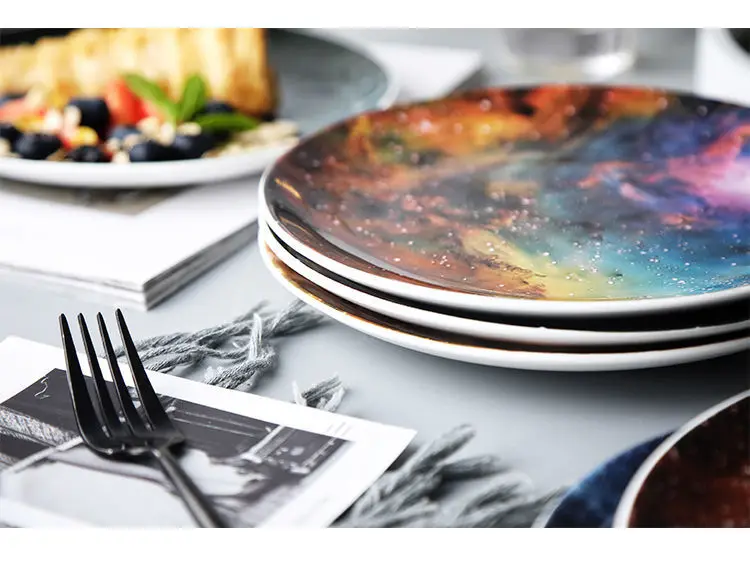 Обеденные тарелки для еды Звездная Вселенная обеденные тарелки 8 дюймов керамическая посуда Десерт стейк хлеб обеденная тарелка набор Рождественские тарелки