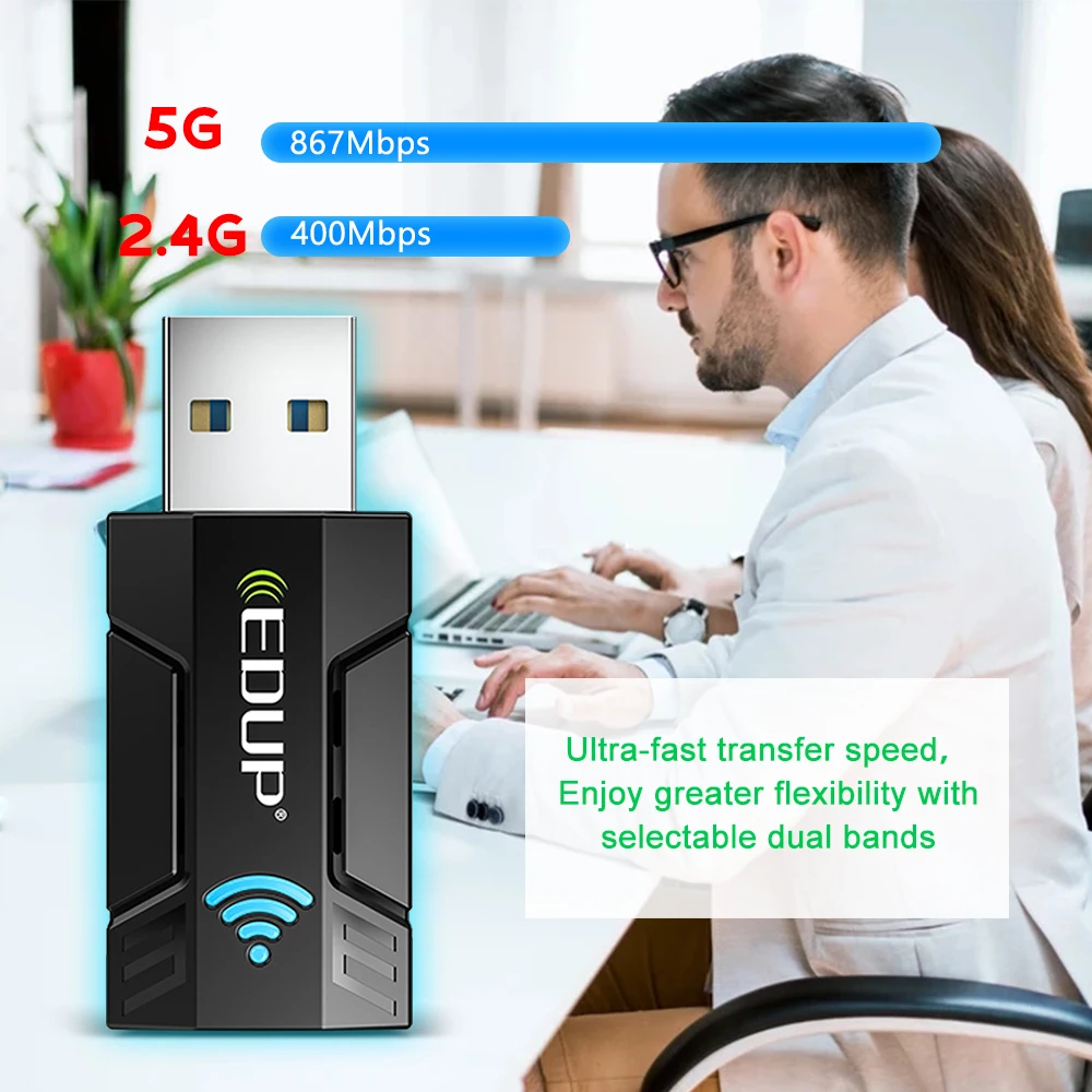 EDUP 1300 Мбит/с беспроводная сетевая карта настольный WiFi приемник 2,4G & 5G двухдиапазонный ноутбук USB мини домашний гигабит