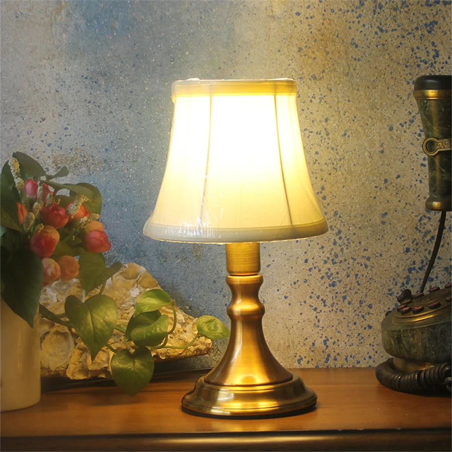 Винтажный светодиодный барный Настольный светильник с тканевым абажуром для спальни, прикроватной тумбочки, кофейного магазина, ресторана, настольные лампы с регулируемой яркостью