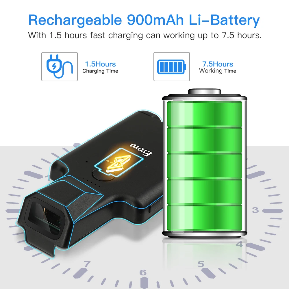Этот сканер штрих-кода является лучшим партнером для работы с телефоном, он предназначен для закрепления в задней части вашего телефона, с помощью простой операции подключения Bluetooth, при сканировании штрих-кода, вы можете проверить данные штрих-кода или количество загрузки на телефон одновременно, легко использовать.