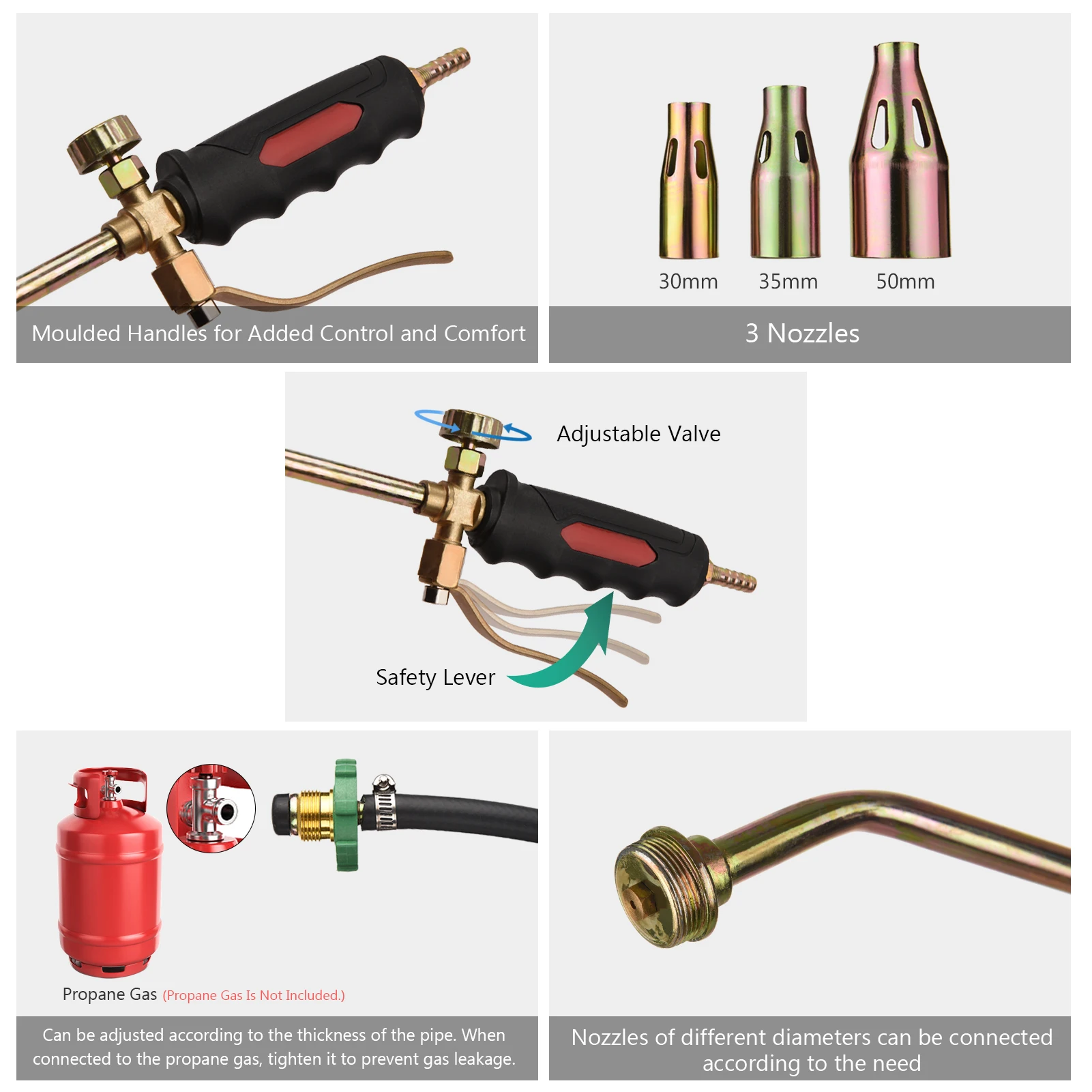 Идеальная Производительность: пропановое пожарное сопло, Литые ручки для дополнительного контроля и комфорта. Предохранительный Рычаг клапана для дополнительного контроля и защиты.