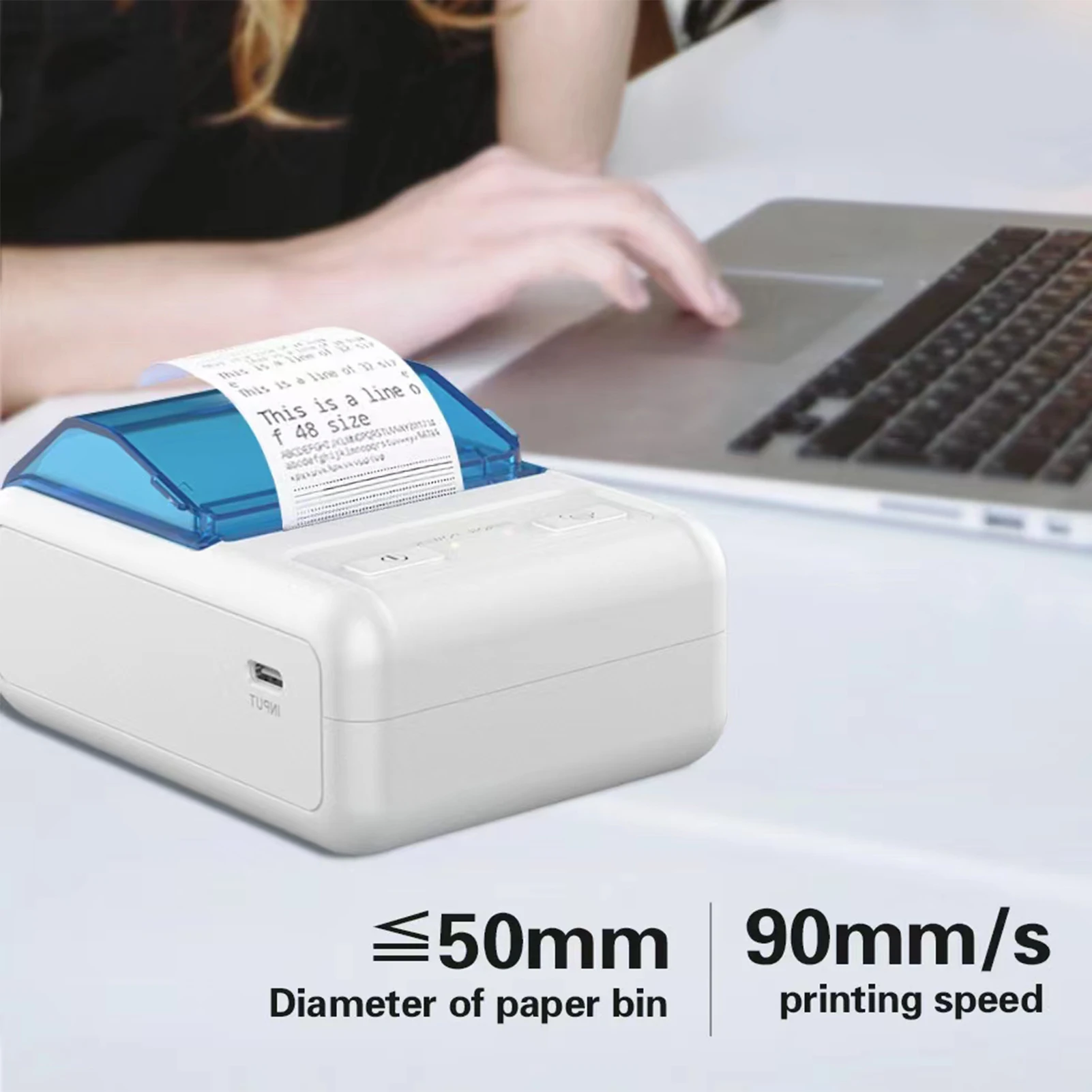 Экономьте пространство:Мини портативный размер и компактный корпус, который подходит для нескольких сценариев, таких как офис, супермаркет, склад и т. Д. Диаметр бумажного ящика должен быть меньше или равен 50 мм, что делает скорость печати 90 мм/сек.