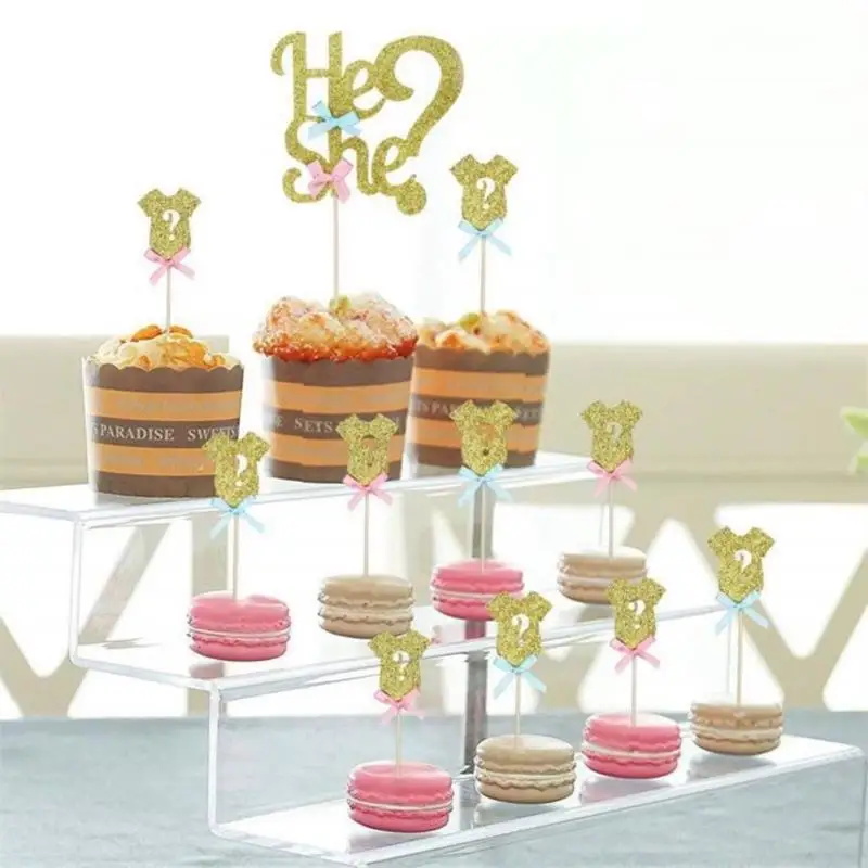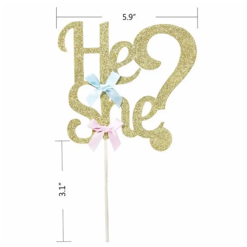 He Or She Gender Reveal Cake Topper Party Decoration Suppliers Girl Or Boy Bow Clothes Cupcake For Baby Shower Cake Decor