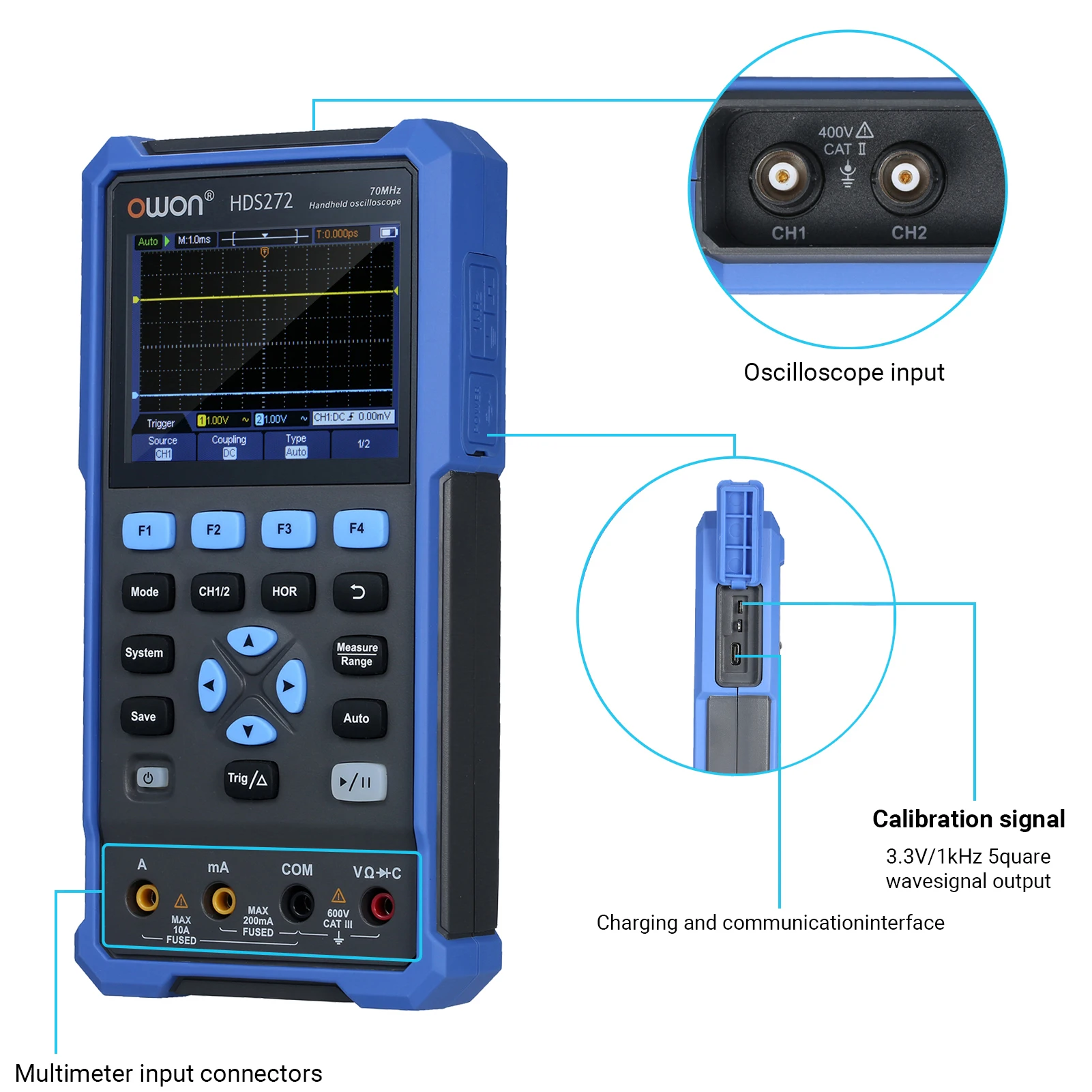 The 2-in-1 versatile unit combines the function of oscilloscope and multimeter in one.