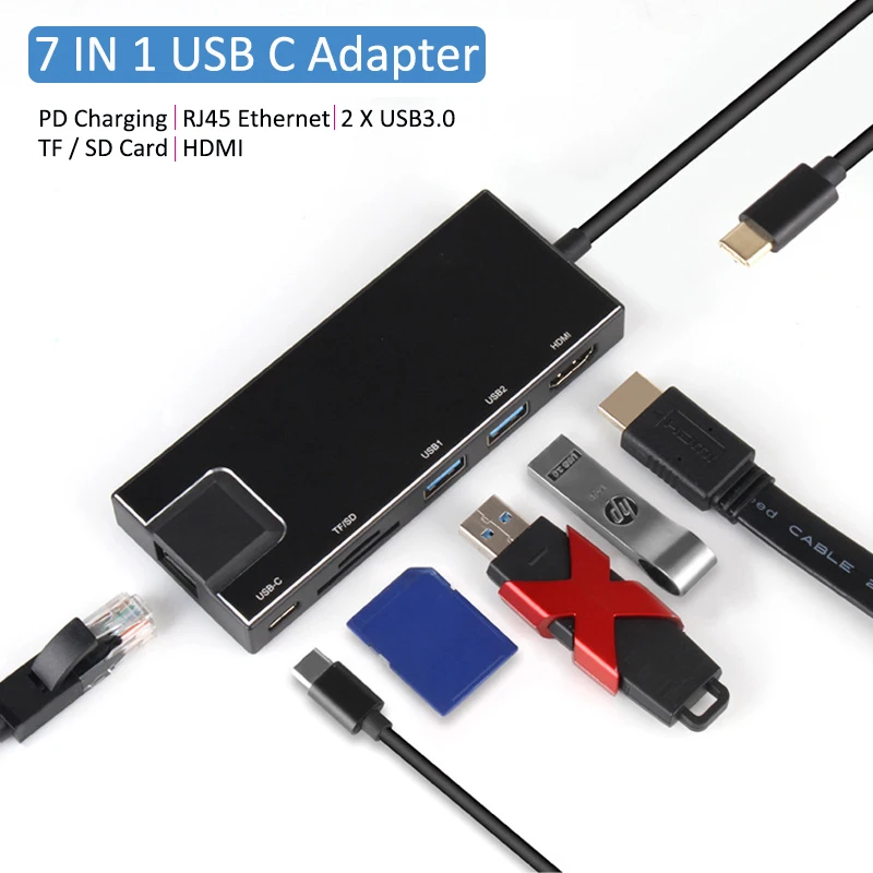 7 в 1 Type-C до 4K RJ45 док-станция USB 3,0 TF PD зарядное устройство концентратор адаптер Быстрое Зарядное устройство Док-станция USB док-станция