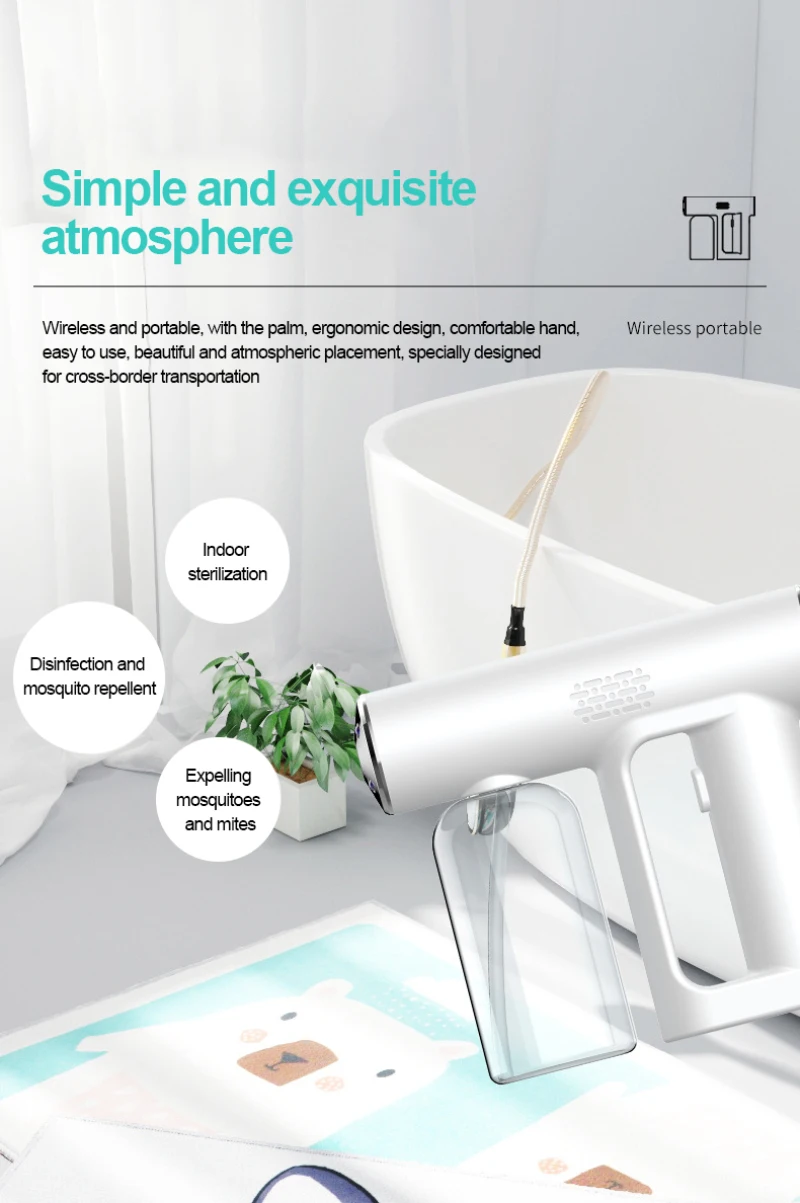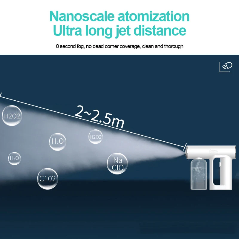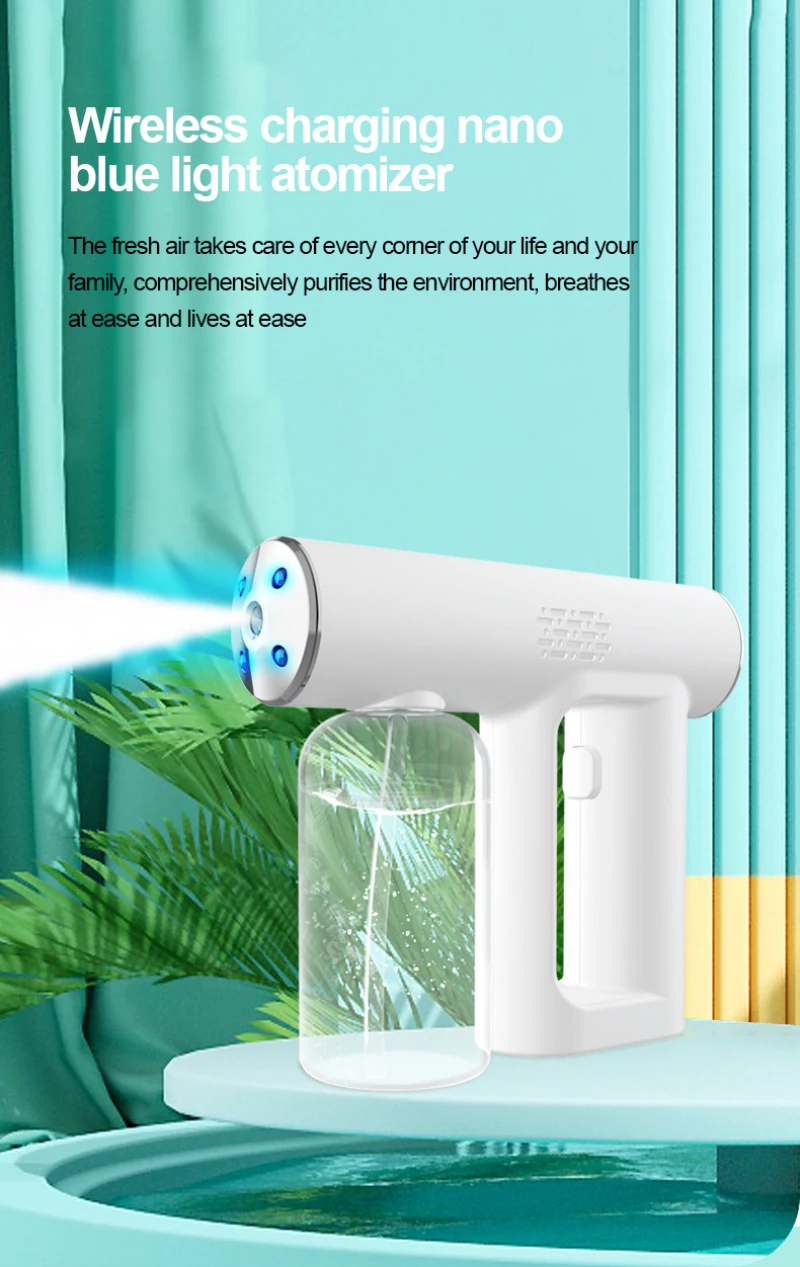 2021 Новый 250 мл Беспроводной нано синий светильник паровой спрей дезинфекционный распылитель пистолет USB зарядка