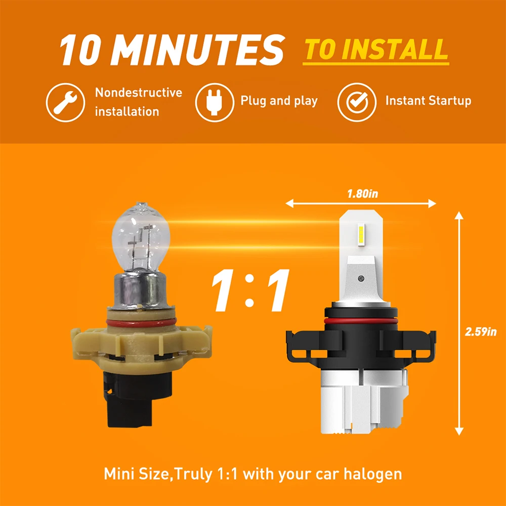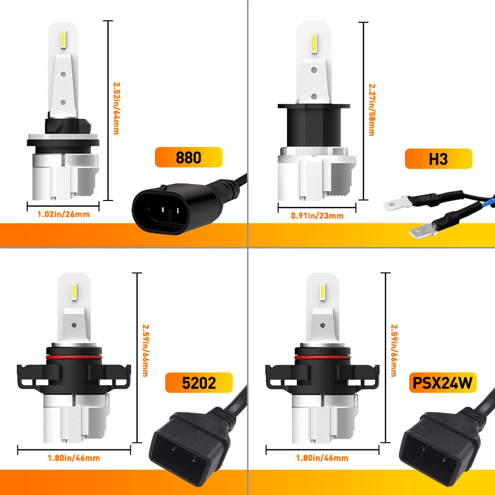 H3, H8, H9, H11, H16(JP), H10, 9006/HB4, 5202, H16(EU), PSX24W, H27/880