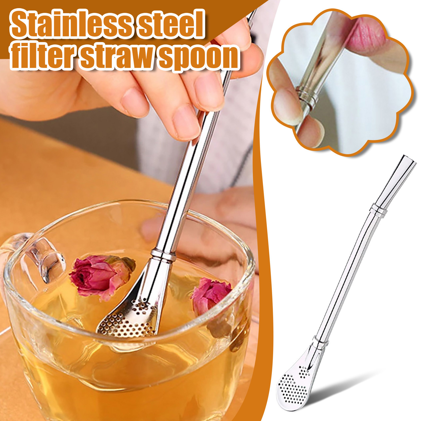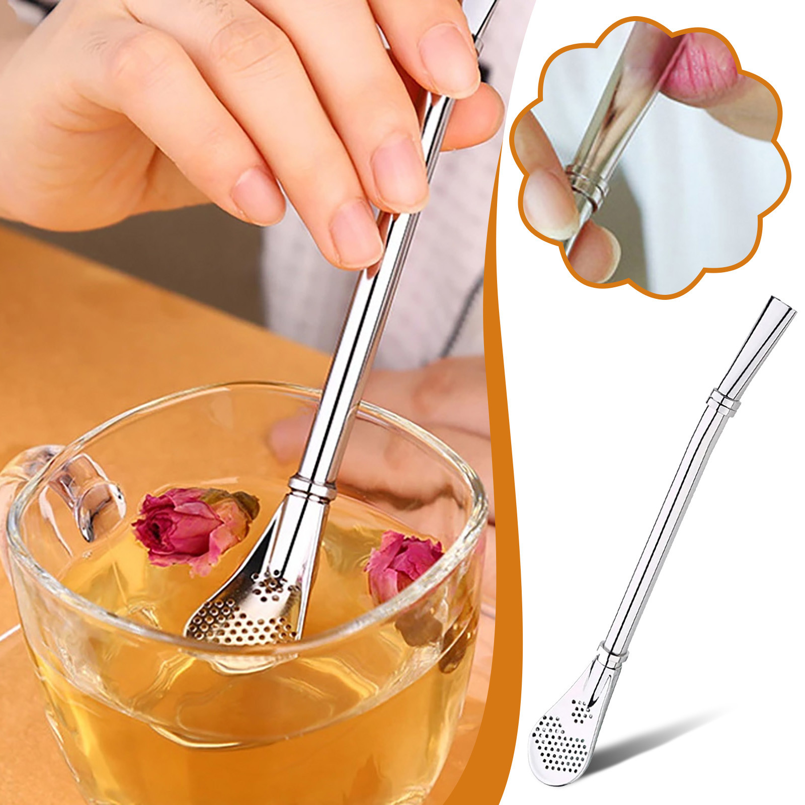 1x солома из нержавеющей стали с фильтрующей ложкой