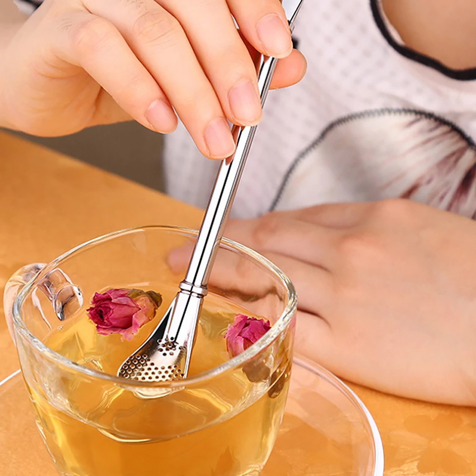 Вы будете рады найти любимых малышей или пожилых родителей/бабушек и дедушек, наслаждаясь едой без проливания на столе или удушья из-за остатка супа/чая. Приходите, чтобы насладиться кофе, чай со свободными листьями, лимонный/холодный чай с 4 в 1 соломенным фильтром, перемешивающая ложка Идеально подходит для дома, вечерние, коктейльные вечеринки, барбекю и девичий вечер. Портативный размер для вашего путешествия или пикника. Ваши друзья/Дети хотели бы получить соломенную ложку в подарок.Содержит: