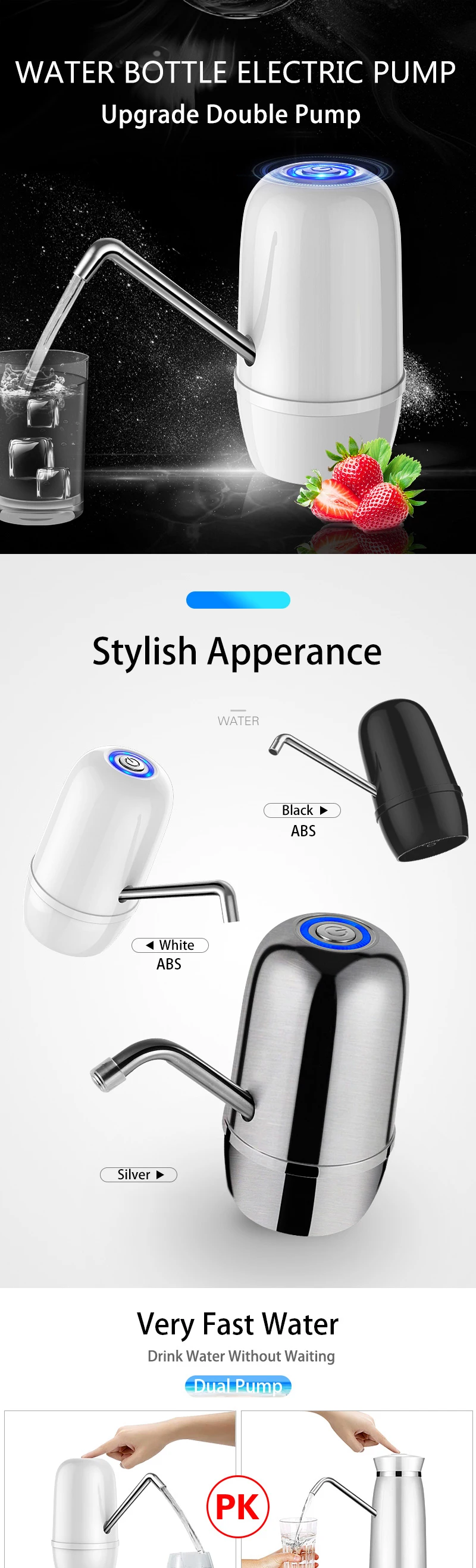 Автоматический электрический портативный диспенсер для водяного насоса с usb-зарядкой, дозатор для холодного напитка, переключатель для питьевой бутылки, двойной насос