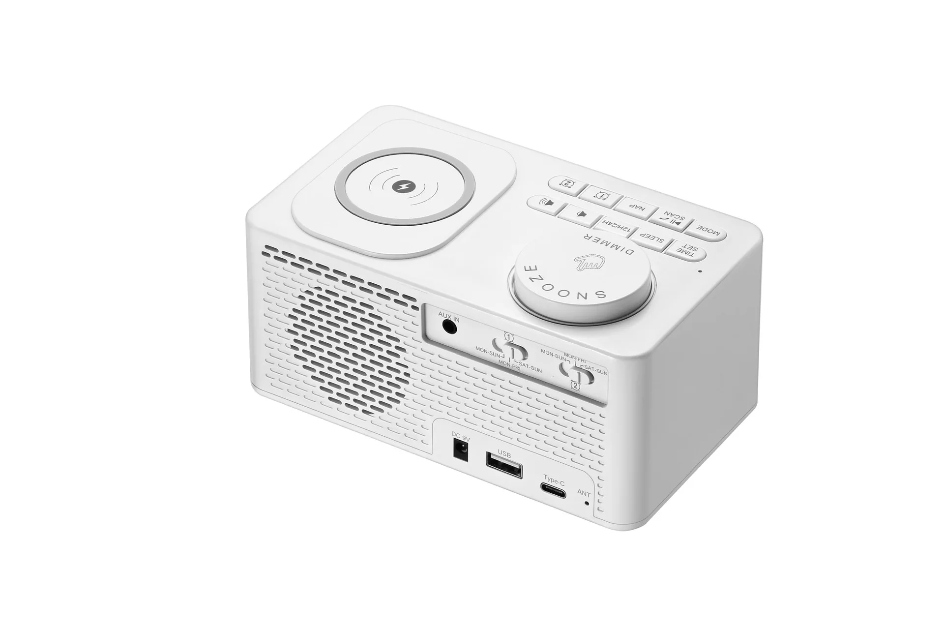 1. PLL электронная FM радио Функция: приемная частота 87,5-108 МГц 2. Функция зарядки USB: Обеспечивает два интерфейса USB + Type-C, которые могут быть внешне заряжены 3. Функция беспроводной зарядки (мощность 10 Вт)-не может заряжать в режиме FM 4. Функция AUX: внешний аудио вход, может быть подключен к MP3, MP4, ВЫХОД ПК, PDA, Компьютер и другое оборудование 5. Светодиодный дисплей, подсветка белого цвета, регулируемая яркость подсветки, а также выключение подсветки. 6. Функция будильника: двойная Настройка будильника: Музыка будильника может выбрать мелодию звонка, fm-радио, USB (Поддержка настройки будильника рабочего дня). 7. Функция Bluetooth: поддержка воспроизведения стерео музыки с Bluetooth, функция управления воспроизведением музыки с Bluetooth; Поддержка Bluetooth громкой связи. 8. Функция воспроизведения музыки через USB: интерфейс USB поддерживает воспроизведение музыки в формате MP3. 9. Функция сна: вы можете быстро установить временный обратный отсчет будильника и напоминание о событиях обратного отсчета 10. Функция сна (функция автоматического отключения). 11. Функция повтора. 12. Есть функция отключения звука. 13. Светодиодный дисплей большого размера, полноразмерный дисплей. 14. Выходная мощность усилителя: одиночный динамик 5 Вт + диафрагма, 15. Частотная характеристика: 100-20 кГц 16. Динамик: 4 Ом 5 Вт * 1 шт. 17. Отношение сигнал-шум: FM 40 дБ Bluetooth 70 дБ Вход AUX 70 дБ 18. Входная мощность: вход переменного тока 100-240 В/50-60 Гц, выход постоянного тока 9 В/2 а трансформатор 19. Резервная мощность часов: 3 батарейки AAA. 20. Размер изделия: (Д) 150 мм * (Ш) 90 мм * (в) 75 мм Вес: 354 г