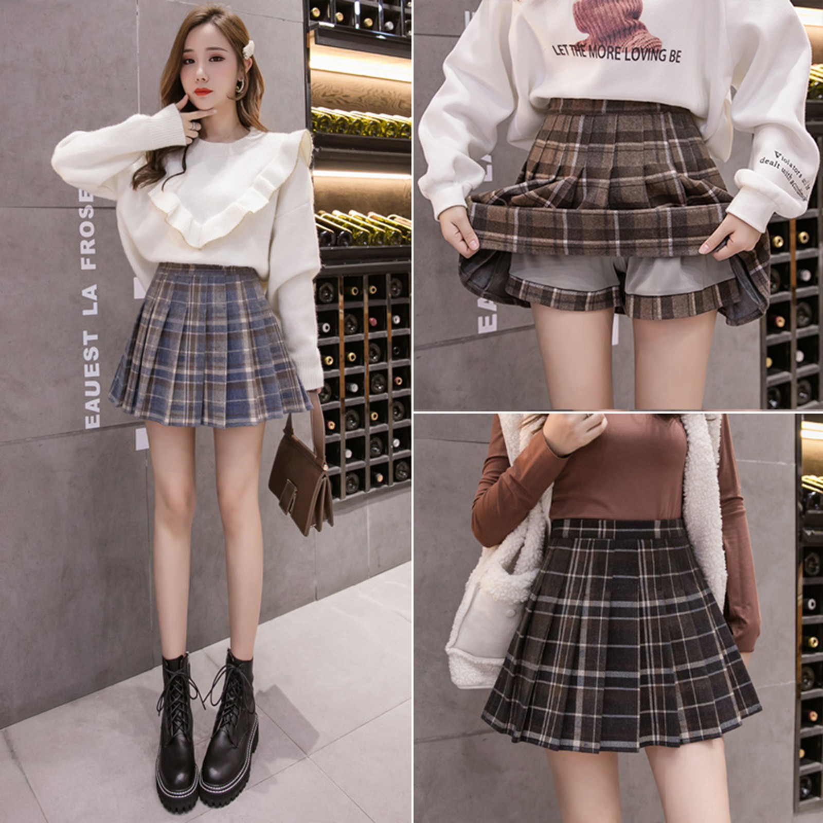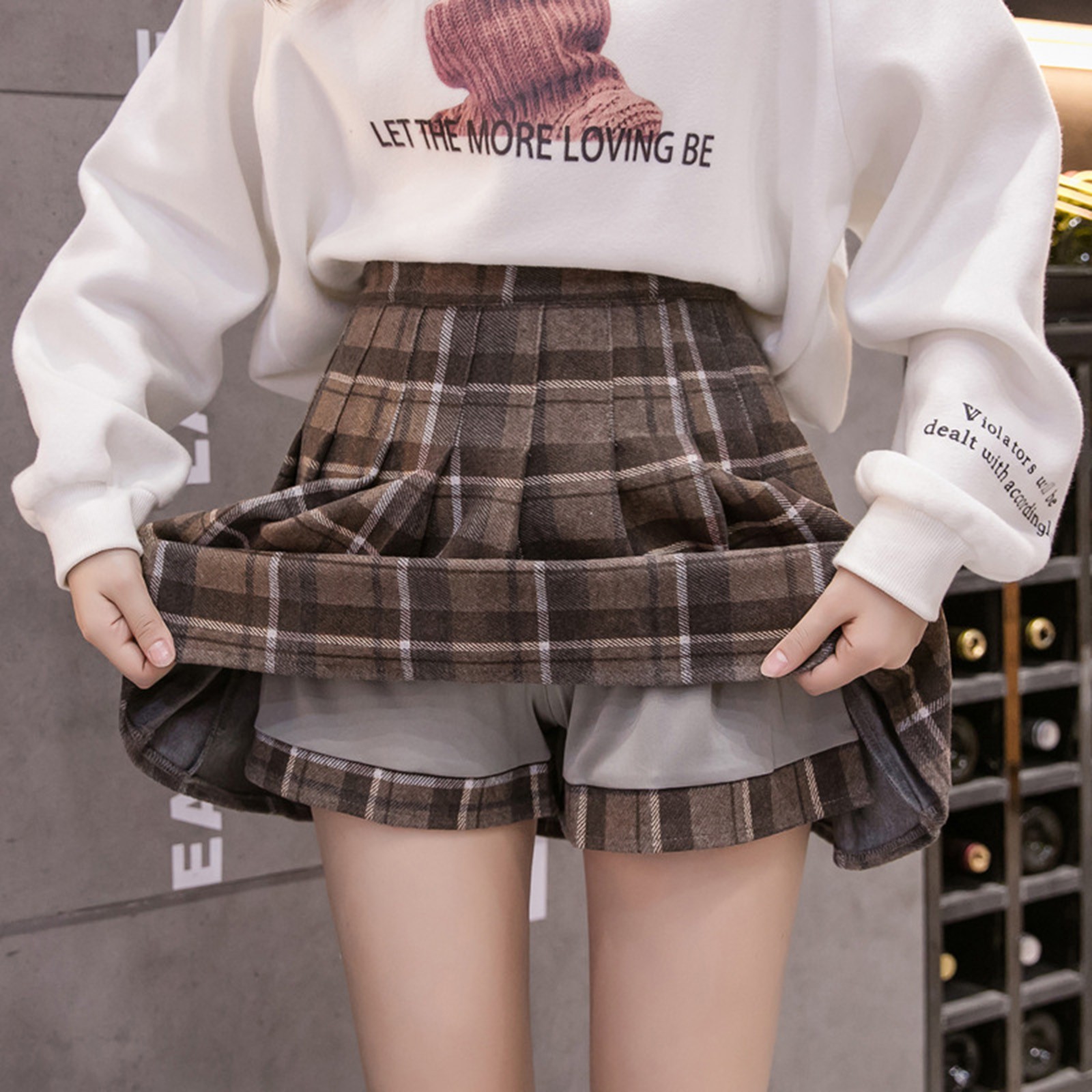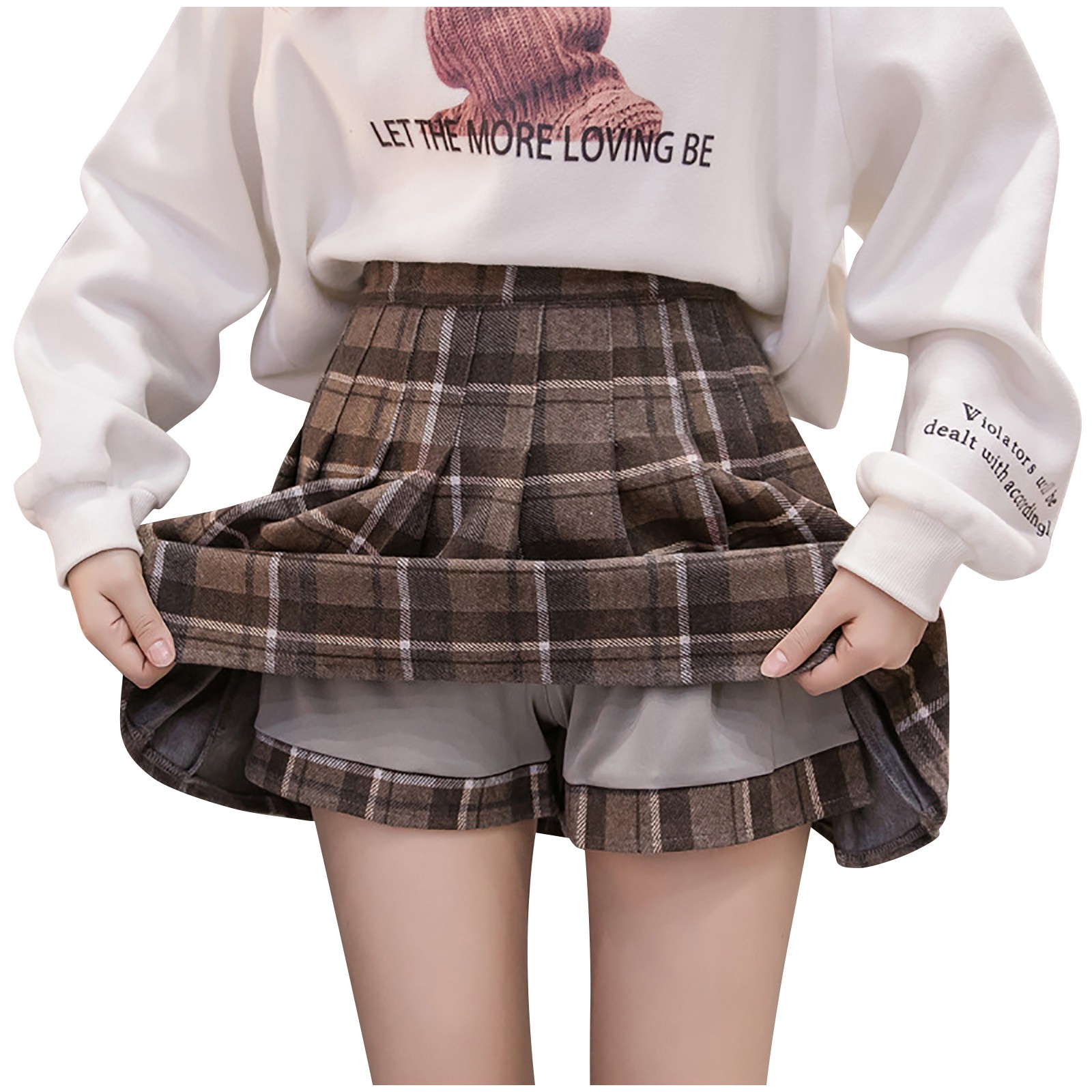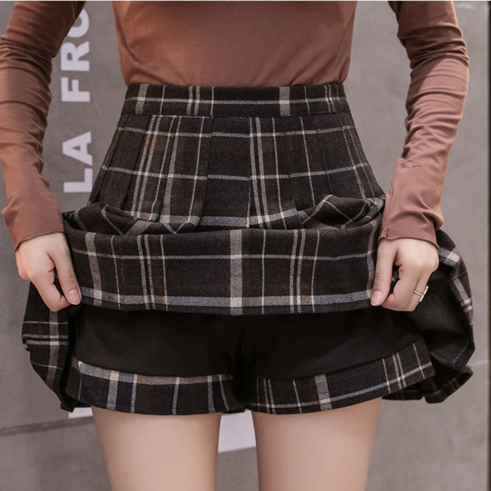 【Особенности】Клетчатая имитация две юбки свободного кроя, повседневный шикарный стиль, может предотвратить подкрадывание съемки