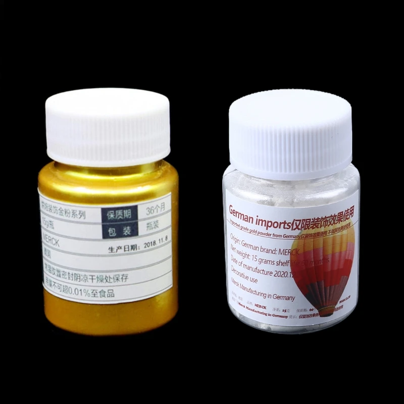 Это банка безопасного и съедобного порошка, который можно добавить в выпечку, пирожные, печенье, шоколад, улучшая качество товаров, украшая еду и демонстрируя ее роскошный и уникальный стиль.