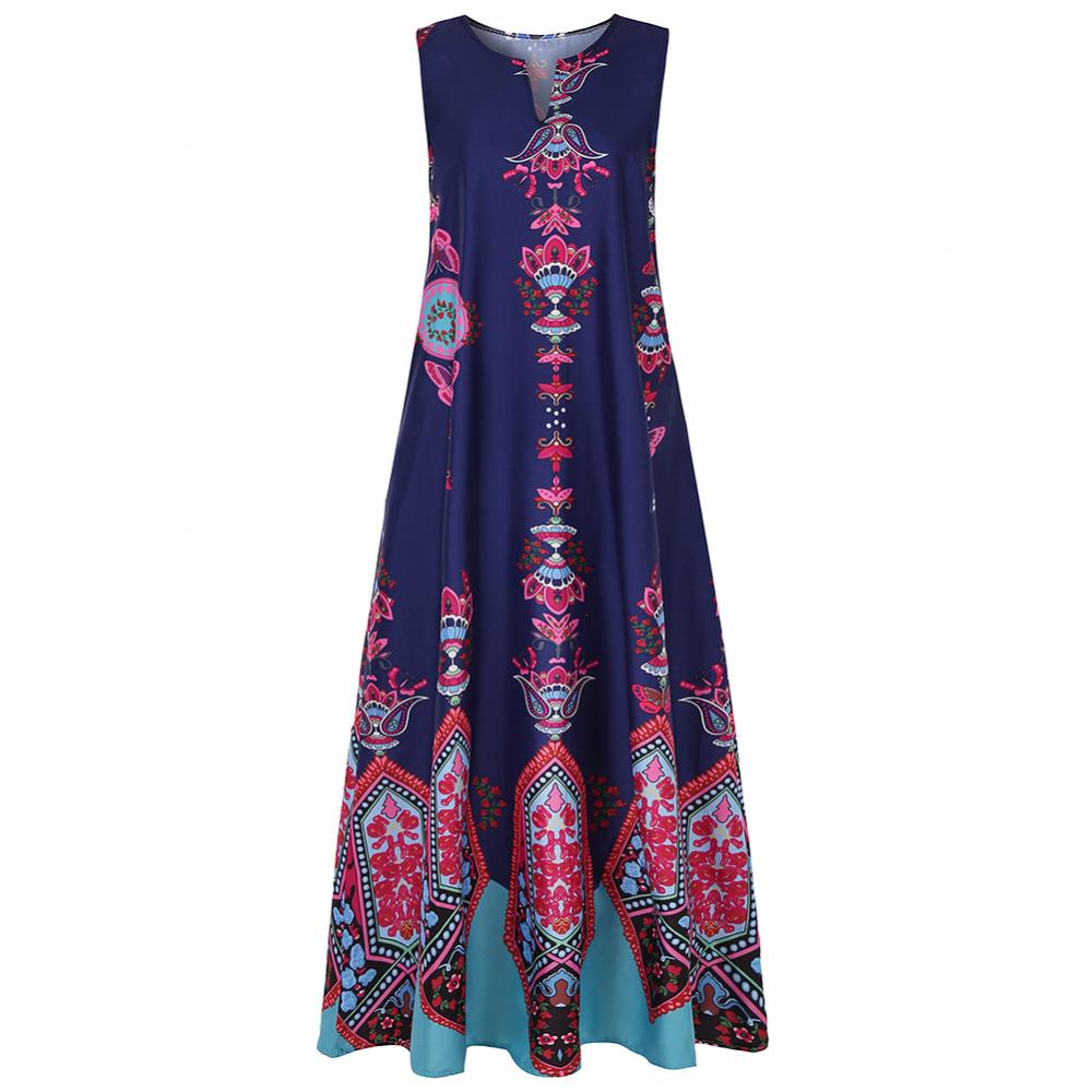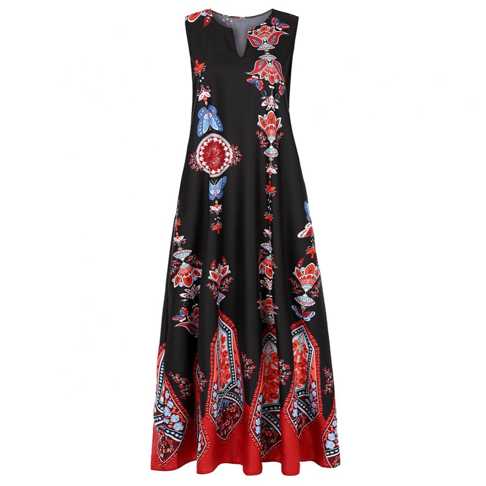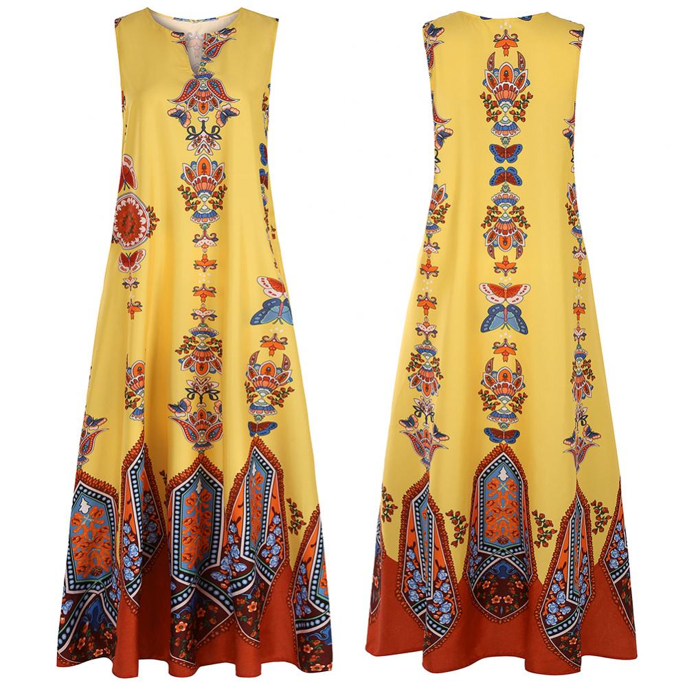 Богемное летнее пляжное женское платье макси без рукавов с v-образным вырезом размера плюс