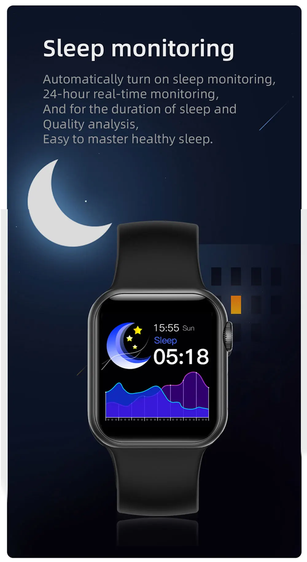 Автоматически включается мониторинга сна 24-часовой мониторинг в реальном времени, а также во время сна и анализ качества, легко овладеть здоровый сон.