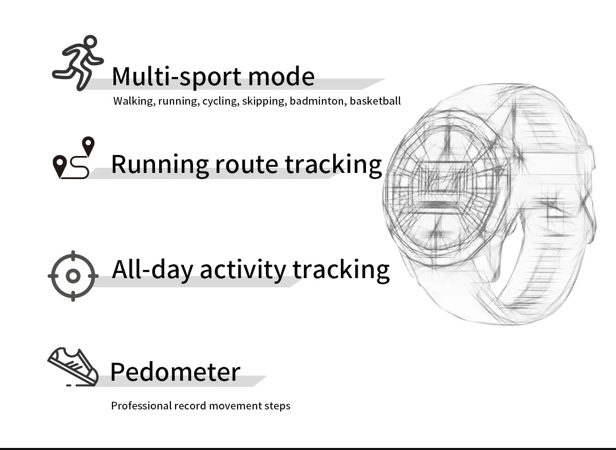 Несколько спортивных режимов: ходьба, бег, Велоспорт, бадминтон, баскетбол, футбол, режим скакалки