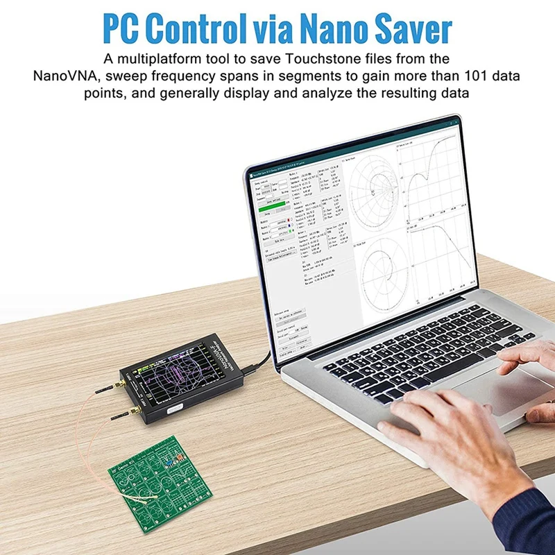 [PC & Android Phone Controlled] с помощью программного обеспечения NanoVNA Saver, он может подключаться к NanoVNA и извлекать данные для отображения на компьютере, а также для сохранения файлов Touchstone. Мы можем экспортировать файлы Touchstone (snp) для различного дизайна радио и программного обеспечения моделирования через программное обеспечение ПК. Поддерживает только мобильный телефон Android.