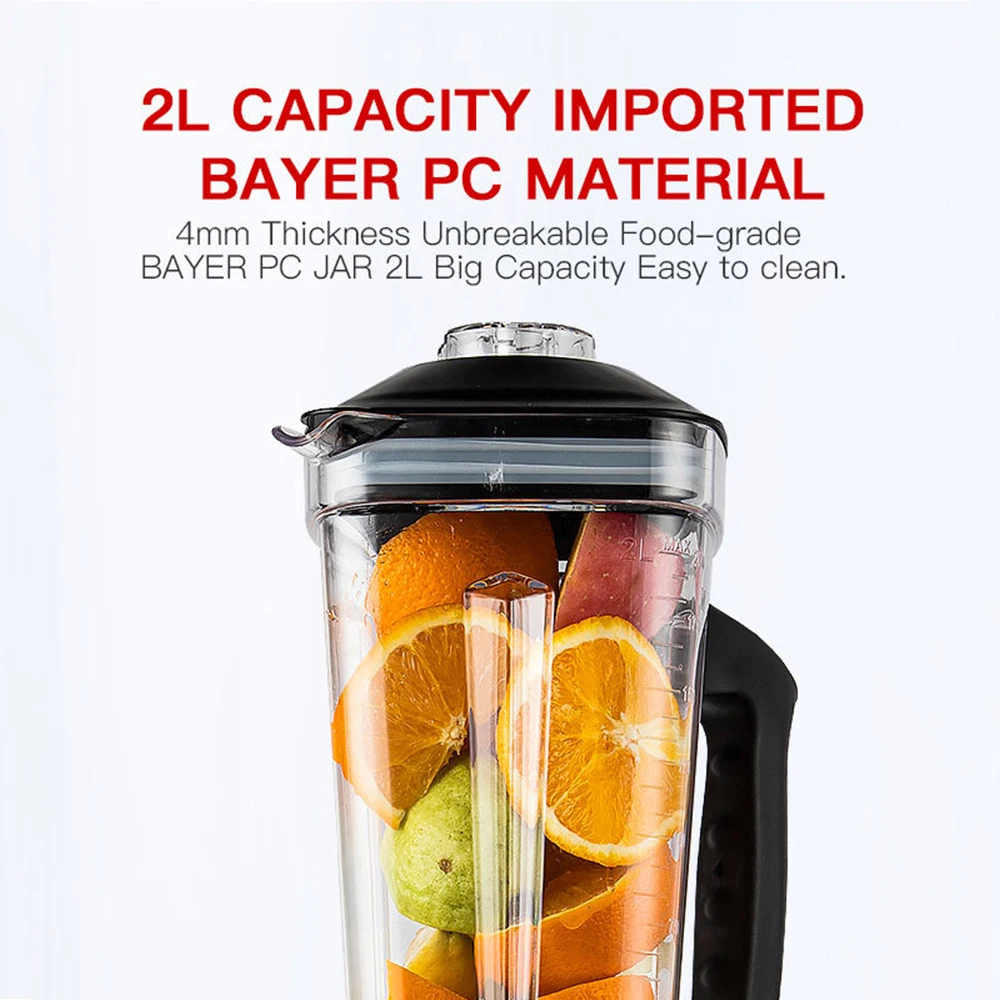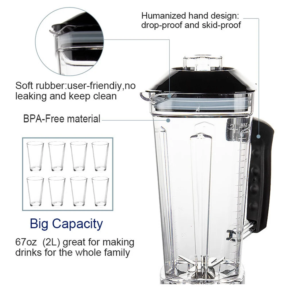Коммерческие блендеры-идеально подходят для наслаждения самыми вкусными смузями дома. С мощным2200 ВтКоммерческий силовой двигатель, эти многоцелевые блендеры могут делать смузи, молочные коктейли, супы, орехи/соевое молоко, измельчать орехи или кофе, супы, коктейли, соки и многое другое! С большой емкостью 2 литра вы можете смешать коктейли, чтобы удовлетворить ваши следующие вечерние ужин за считанные секунды!