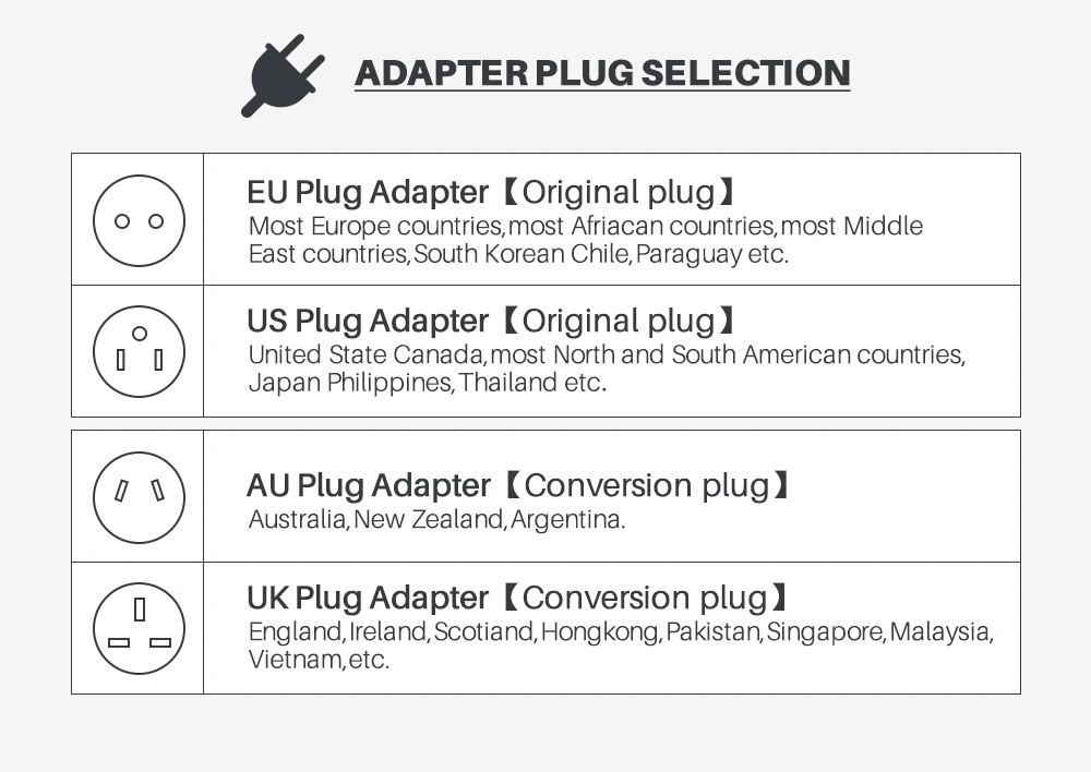 Напряжение питания:110V/50Hz (штепсельная Вилка стандарта США), 220V/50Hz (штепсельная Вилка европейского стандарта)