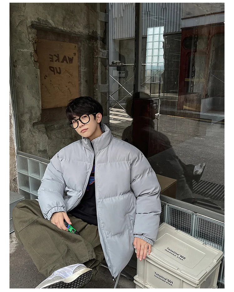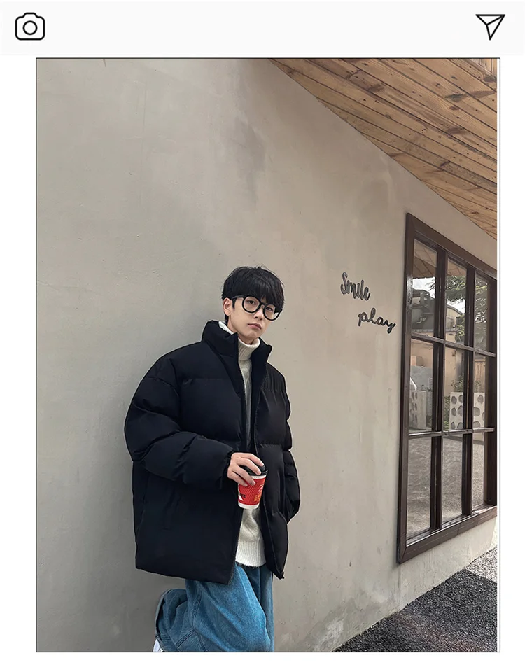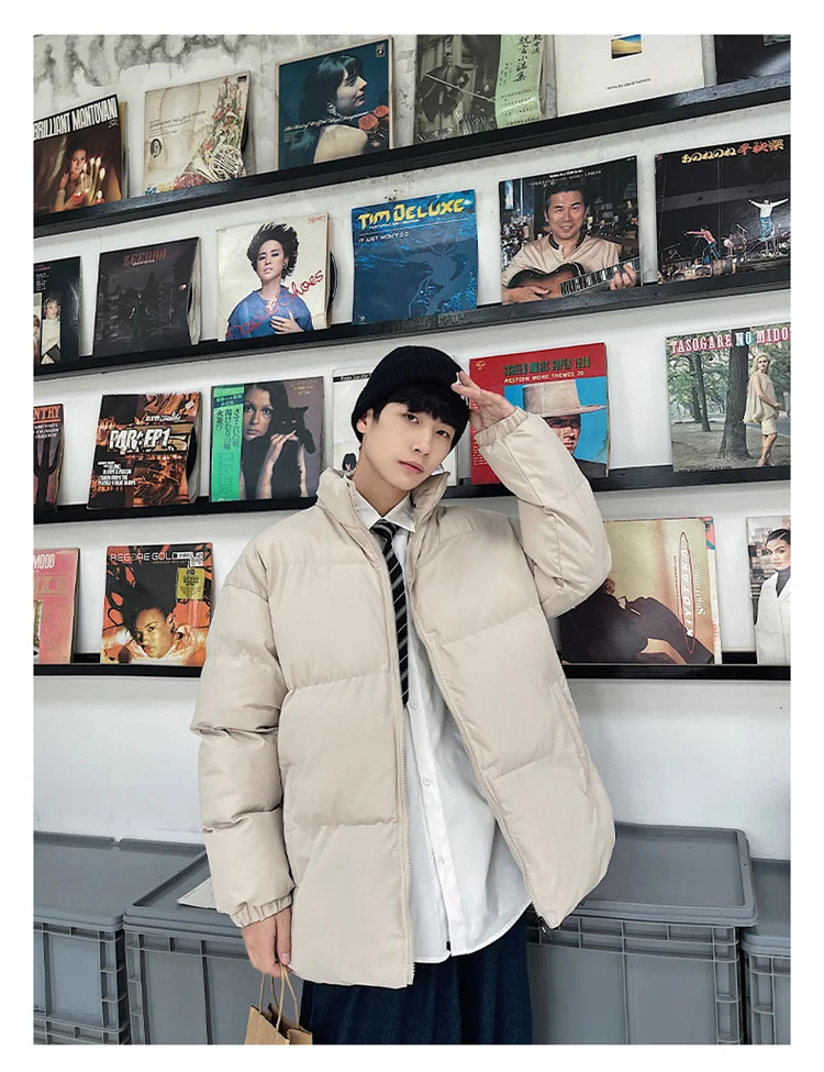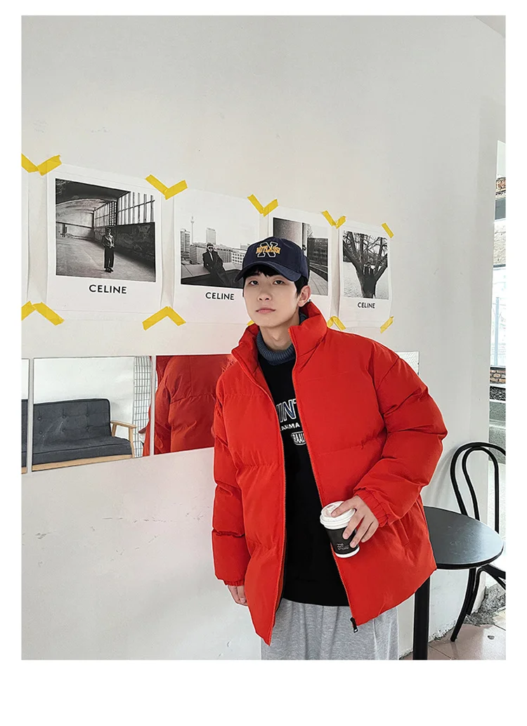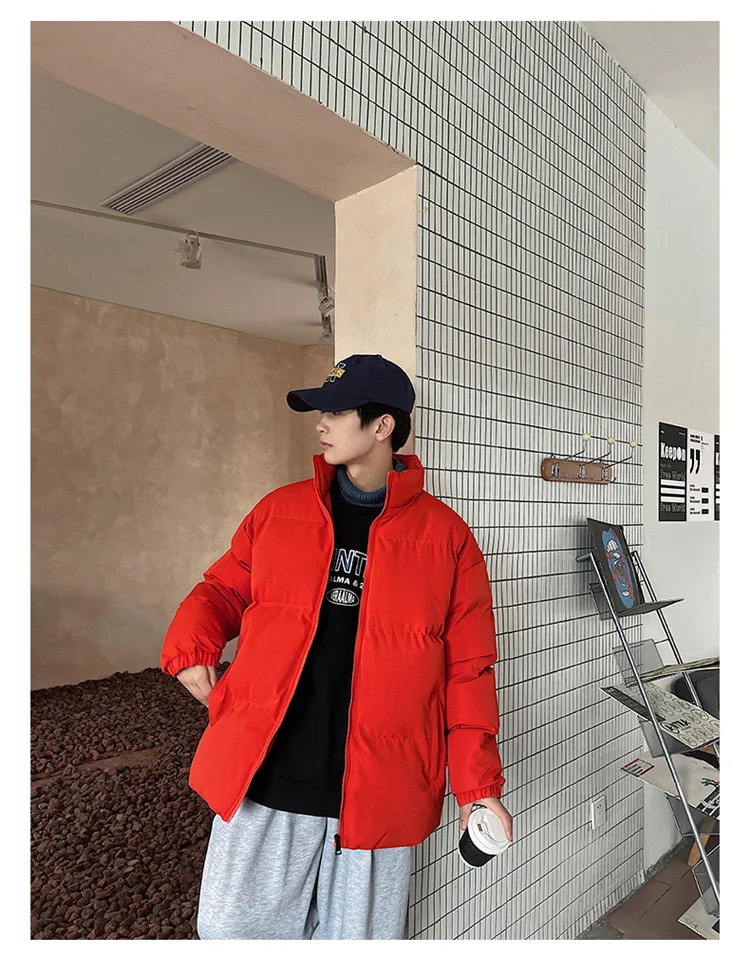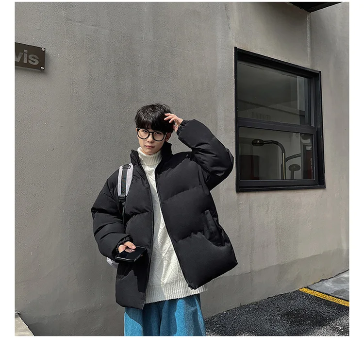 Утолщенные теплые куртки мужские 2021 зимние новые японские уличные унисекс свободные хип-хоп высокие уличные универсальные куртки-Пуховики с воротником-стойкой