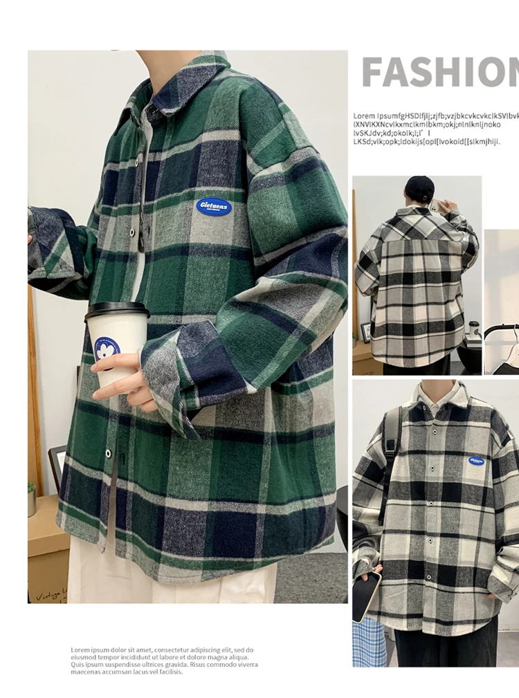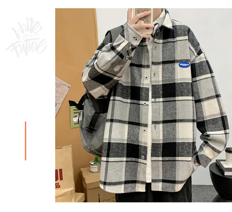 Harajuku фланелевая клетчатая Толстая Мужская рубашка, новинка 2021, японская парная стильная уличная винтажная Свободная рубашка с длинным рукавом для мужчин