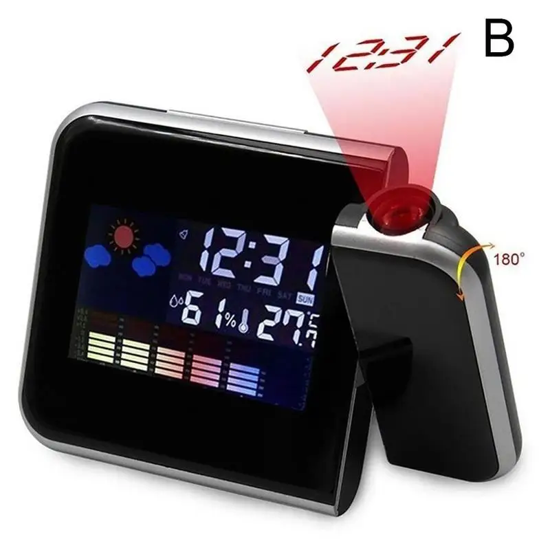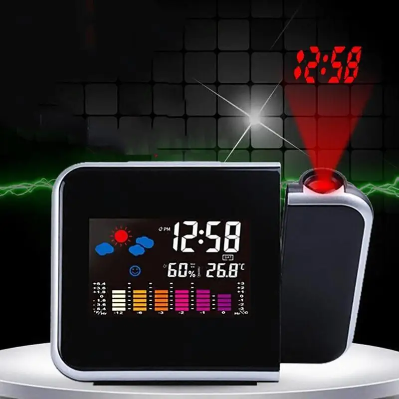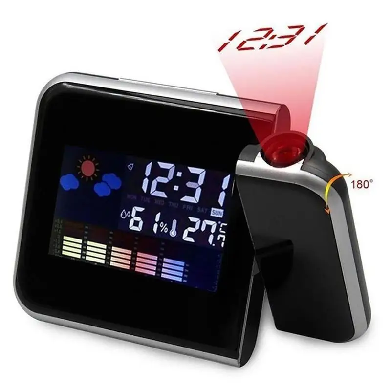 Эти часы имеют полноцветный экран, который может отображать время, температуру, влажность и проектное время на любой стене или потолке.