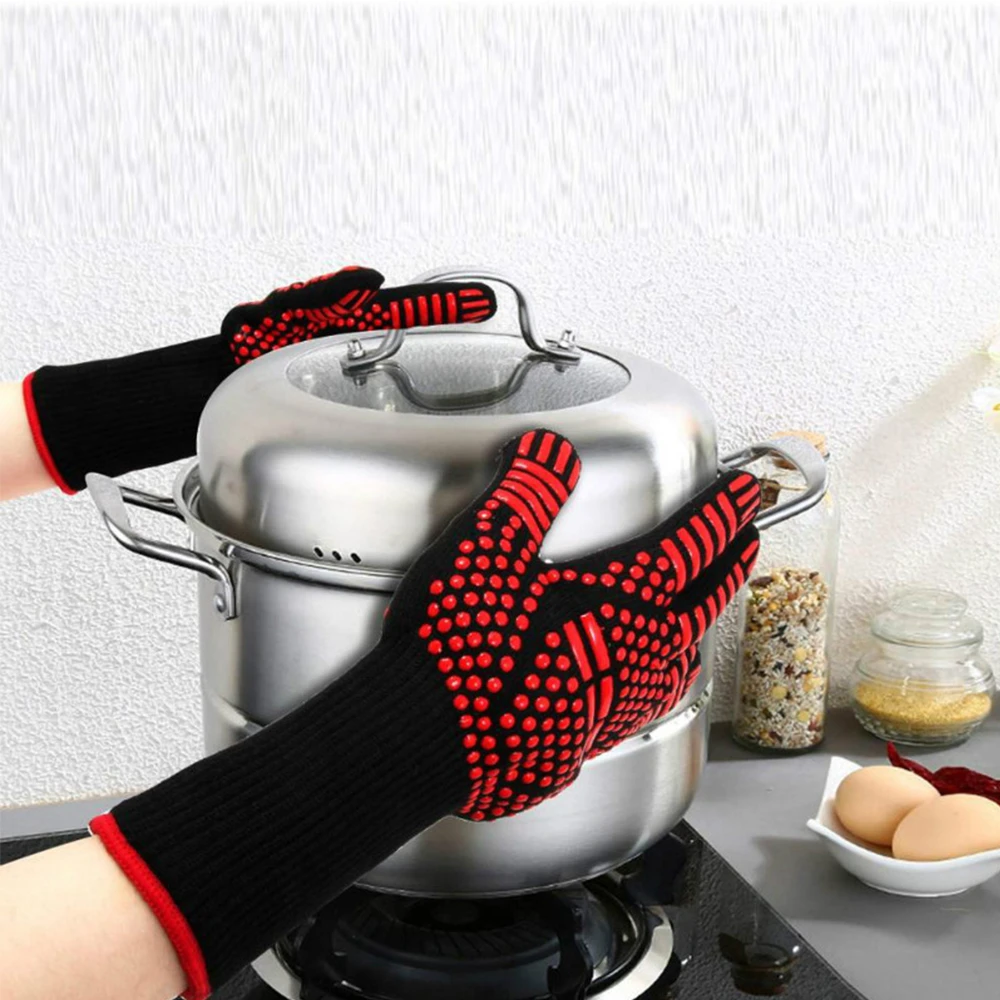 Особенности продукта: Внешний материал: Арамид 1313 (500 ° C / 932 по Фаренгейту термостойкость)/Деян импортированная пряжа (800 ° C / 1472 по Фаренгейту термостойкость), отличное тепло, огнеупорные и огнезащитные свойства Внутренний материал: хлопок, хлопчатобумажная пряжа впитывает пот, приятный на ощупь. Поверхность: экологически чистый силикон, нескользящий, экологически чистый и нетоксичный, с использованием высокотемпературного и экологически чистого силикона, отличная Нескользящая производительность. Температурное сопротивление: 7-10 секунд высокотемпературное сопротивление 800 градусов Конструкция крючка делает хранение более удобным, экономит место и предотвращает рост бактерий Перчатка усилена между большим и пальцем, что делает большой палец более свободно перемещаться. Ning Xuan, удерживая абразивный инструмент более Многофункциональное использование: Наши термостойкие перчатки могут защитить руки при приготовлении пищи, выпечки и удержании гриля. Идеальный кухонный помощник для приготовления пищи с высокой температурой, выпечки, гриля или всего, что включает в себя тепло. Спецификация: Материал: Арамид 1313/Деян + хлопок + силикон Длина: 30-35 см Диапазон использования: барбекю, духовка, микроволновая печь, приготовление пищи Посылка включает в себя: Пара перчаток