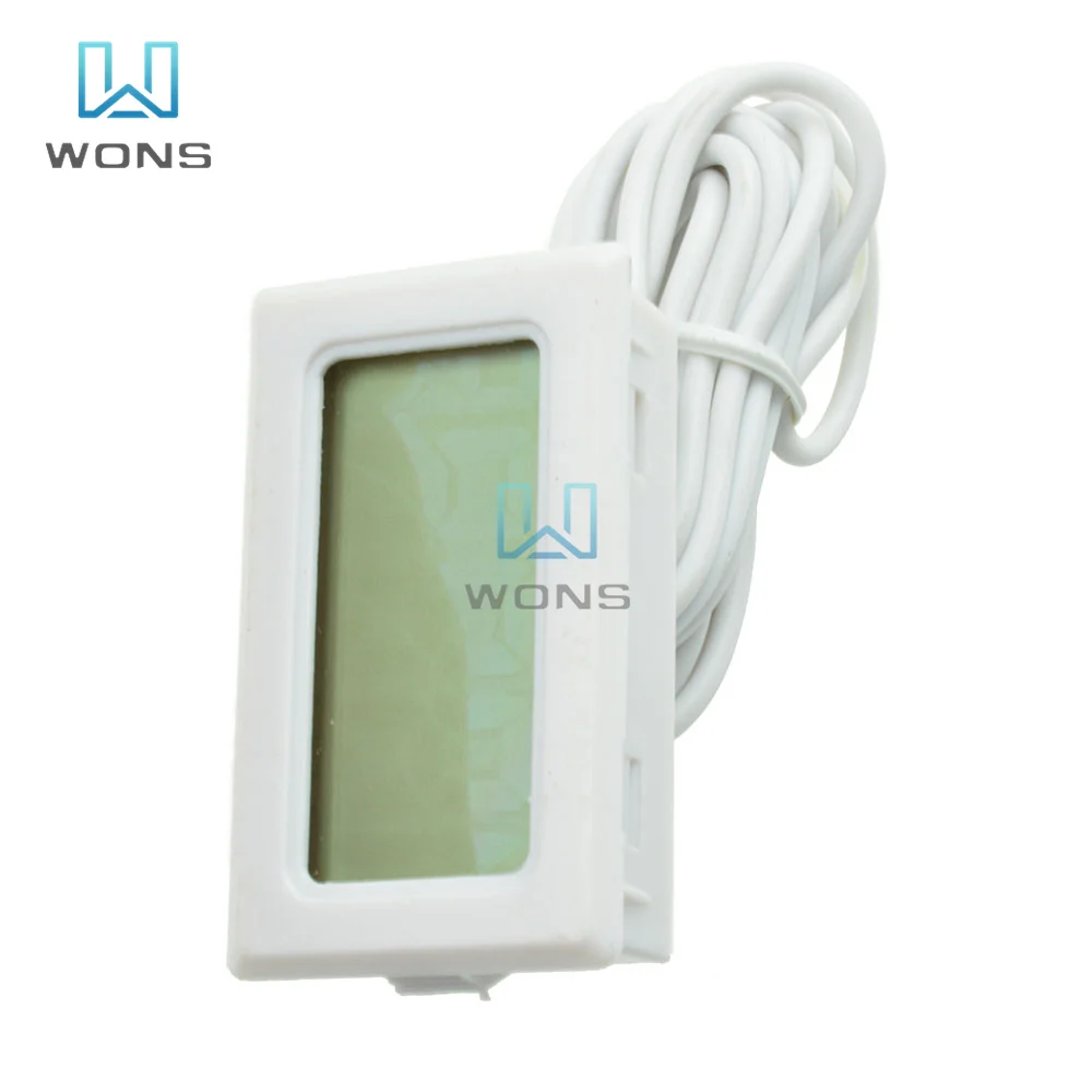 TPM-10 термостат для контроля температуры светодиодный цифровой дисплей термометр для контроля температуры инкубатор с датчиком NTC 2M Особенности: Диапазон температур: -50 °C ~ 70 °C,Разрешение дисплея температуры: ± 1 °C,Точность измерения температуры: ± 0,5 °C,Тип датчика: NTC (10K/3435),Рабочее напряжение: 1,5 вРабочий ток: макс. 4 мА,Рабочая температура: 0 °C ~ 50 °C,Температура хранения:-10 °C ~ 60 °C,Длинная линия зонда: Литой чехол-зонд 80 см,Размер: 47 мм * 28 мм * 15 мм,Тип батареи: LR44,Вес: 30 г. Применение: Измерения внутри и снаружи комнатной температуры с кондиционеромИзмерение температуры холодильника внутри и снаружиИзмерение температуры телаИзмерьте температуру воды в пруду Посылка 1 светодиодный цифровой регулятор температуры