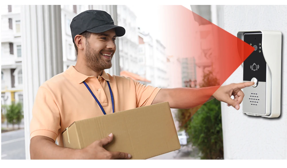Этот видео телефон двери принимает другой дизайн. Наружный блок встроен в интеллектуальный ИК-датчик, ИК-датчик может управлять светодиодами в соответствии с интенсивностью освещения. Ночью или при плохом светильник, светодиодный светильник с включится автоматически и позволяет вы все еще можете видеть четкое изображение в ночное время. В дневное время светодиодные лампы не будут включаться. Это блестящий дизайн.