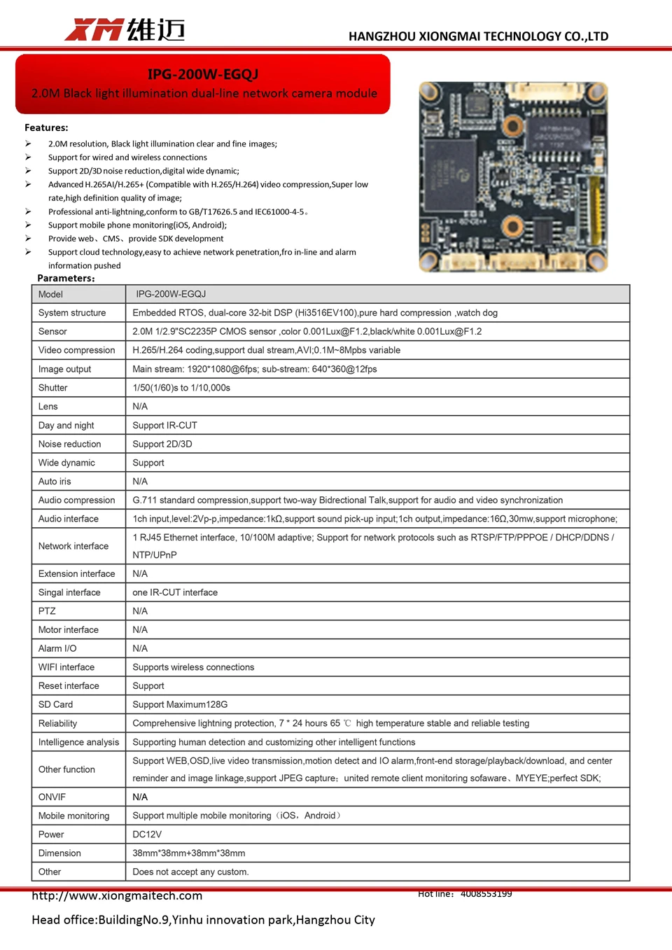 * Облачный сервер/сервис расположен по адресу (3w points) XMeye.net.