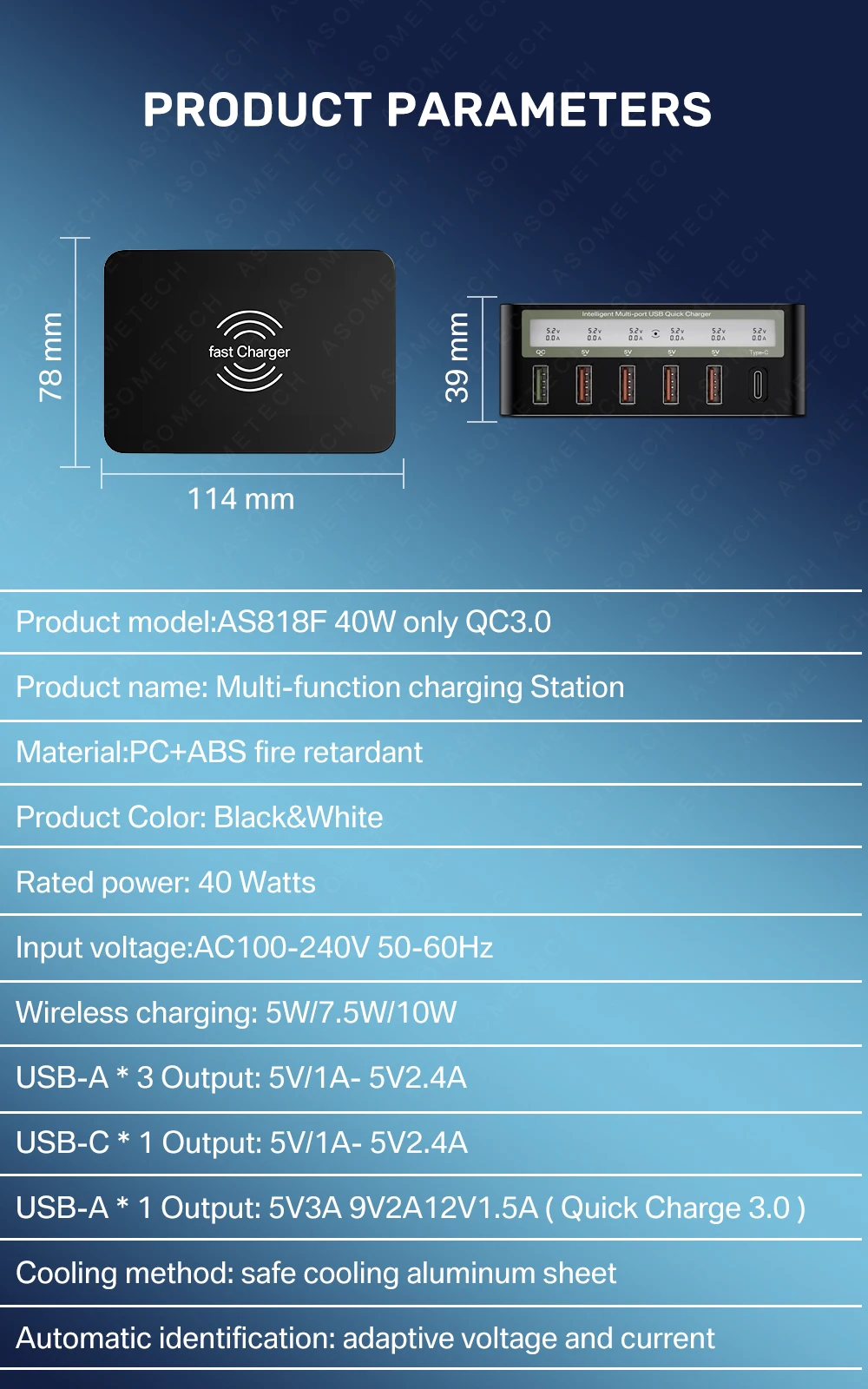Беспроводная зарядная станция QC с 6 портами типа 2 - 40 Вт